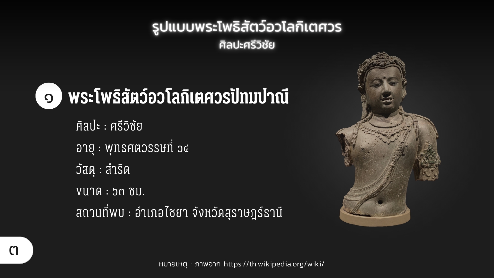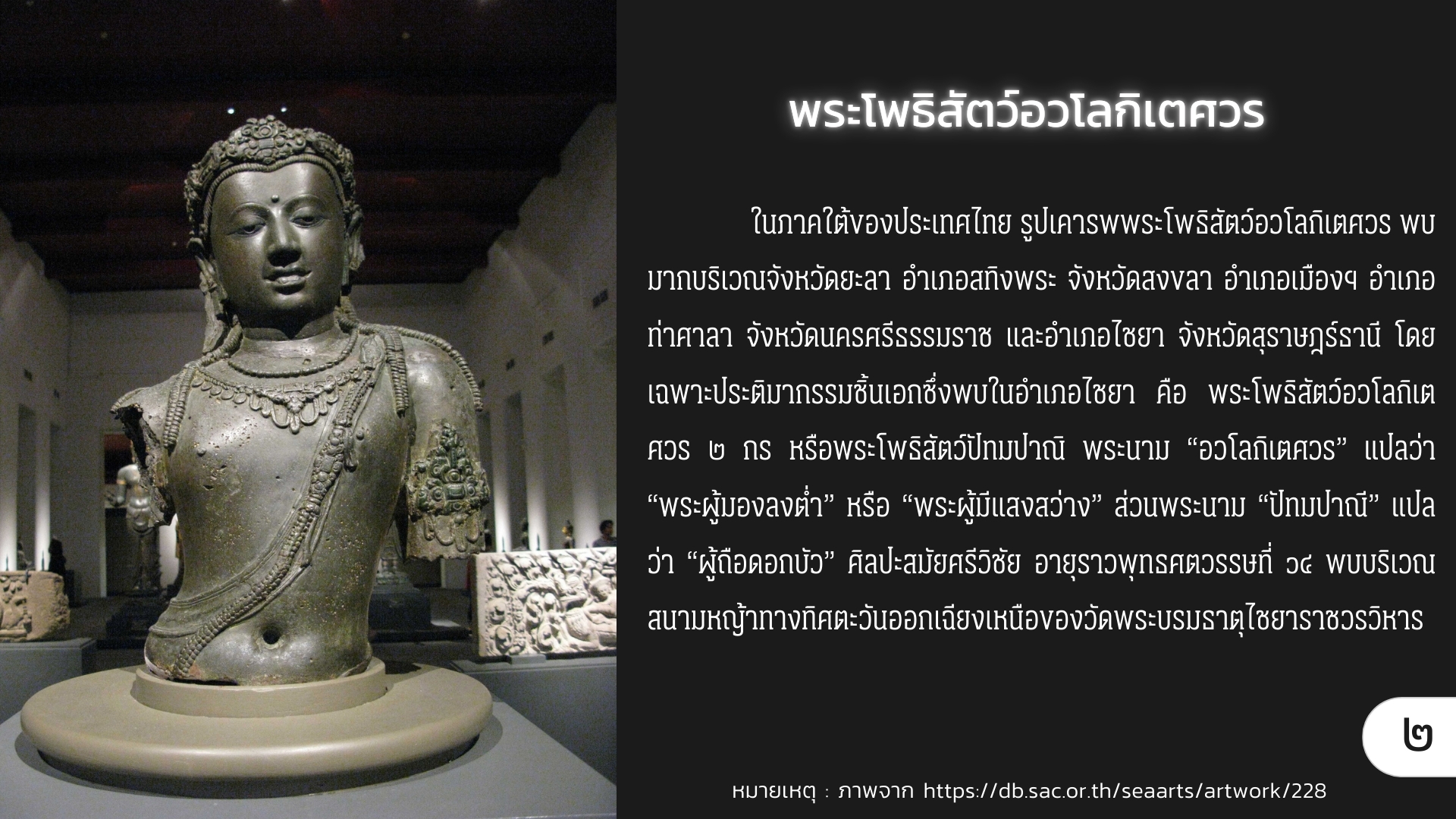 องค์ความรู้ทางวิชาการเรื่อง : ประติมากรรมรูปพระโพธิสัตว์อวโลกิเตศวร (ปัทมปาณี) แห่งเมืองไชยา สัญลักษณ์ของความเจริญรุ่งเรืองในอาณาจักรศรีวิชัย