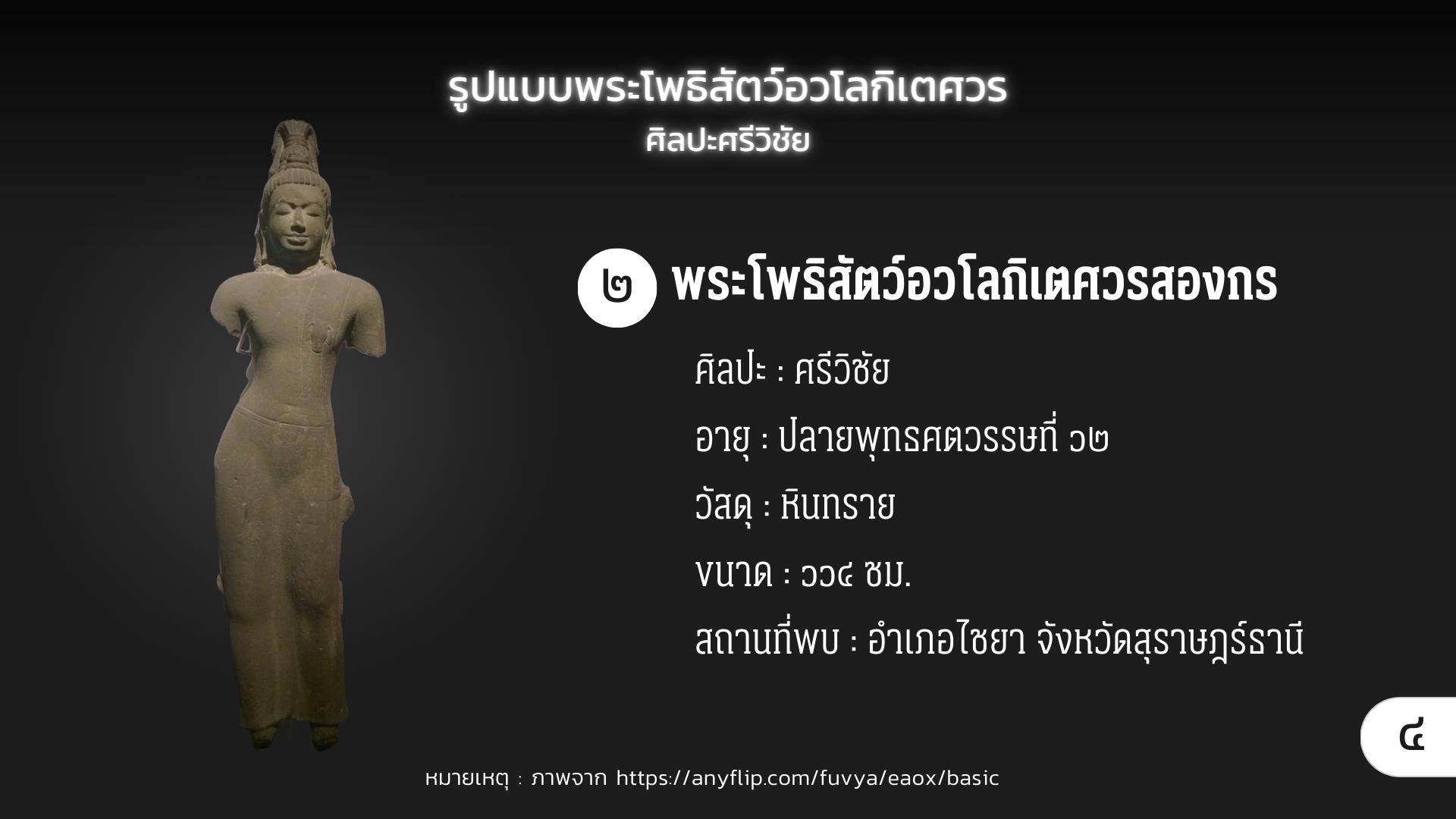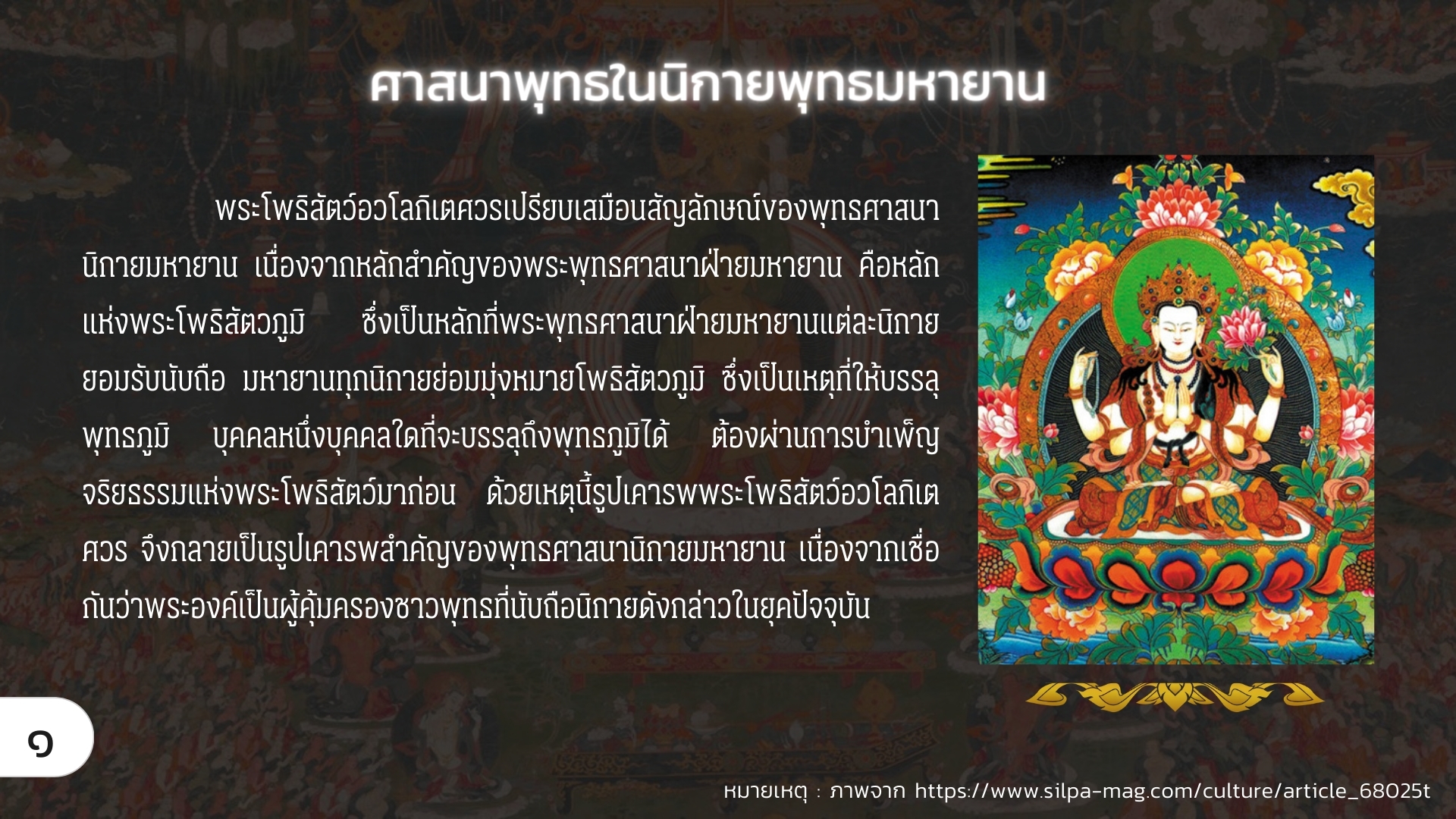 ๓. ธีรนาฎ มีนุ่นและคณะ. (ม.ป.ป.). พระโพธิสัตว์อวโลกิเตศวรในคาบสมุทรสทิงพระ. https://www.finearts.go.th/promotion/view/๑๖๘๑๑-
