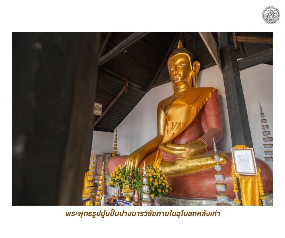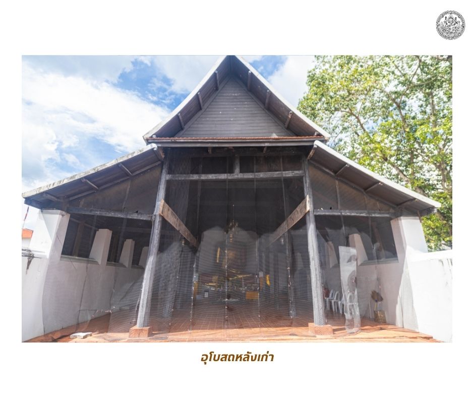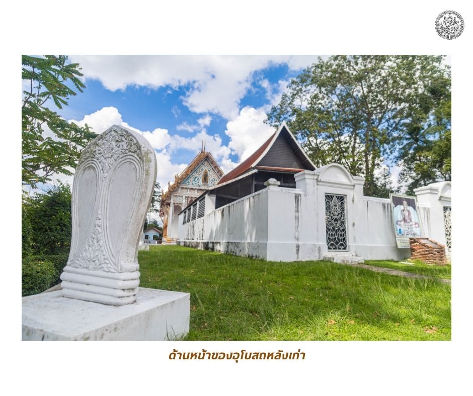 ๒. อุโบสถหลังเก่า เป็นอาคารทรงไทย ขนาด ๕ ห้อง หันหน้าไปทางทิศตะวันออก มีลานปูอิฐบริเวณส่วนหน้าของอาคารภายในกำแพงซึ่งผนังกำแพงเป็นผนังเดียวกันกับผนังของอุโบสถ เสาร่วมในของอุโบสถเป็นเสาไม้แก่น ด้านนอกมีเสาปูนติดอยู่กับส่วนผนังอาคาร ผนังอาคารมีความสูง ๒ เมตร ถัดขึ้นไปเป็นช่องลมทำด้วยบานไม้เกล็ดสูงขึ้นไปจนถึงเชิงชาย เครื่องบนเป็นเครื่องไม้ ไม่ประดับช่อฟ้า ใบระกา หางหงส์ หลังคามุงด้วยกระเบื้องดินเผา หน้าบันไม่มีการตกแต่งลวดลายด้านในของเสาร่วมในทั้งสองแถวประดับด้วยแผงไม้คอสองด้านละ ๑ แถว ภายในอุโบสถประดิษฐาน พระพุทธรูปปูนปั้นปางมารวิชัย ลงรักปิดทอง จีวรสีทาชาด