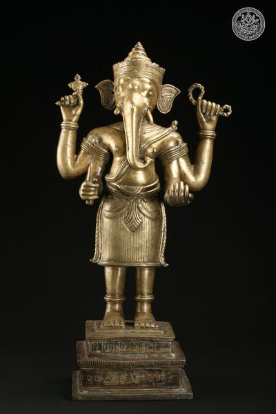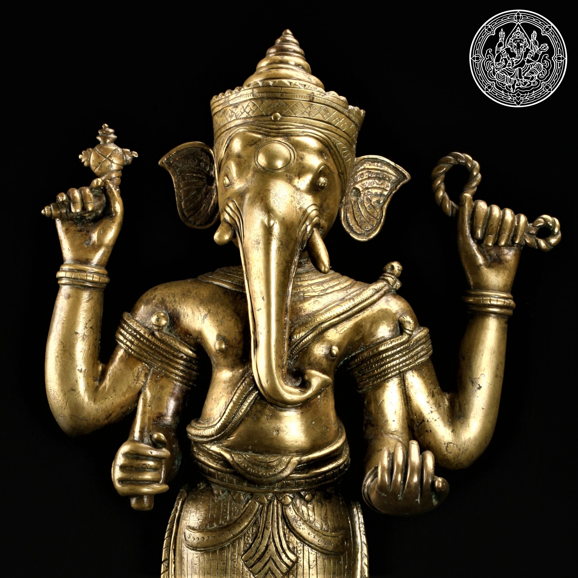 พระคเณศสำริด มีขนาดสูง ๔๖.๕ เซนติเมตร เป็นพระคเณศ ๔ กร ประทับยืนตรง (สมภังค์) บนฐานสี่เหลี่ยมจัตุรัสซ้อนกันสองชั้นซึ่งมีจารึกทั้งด้านหน้าและด้านหลัง องค์พระคเณศสวมกรัณฑมกุฏ (คือ หมวกรูปชามคว่ำ เป็นหมวกที่เทพทั่วไปและกษัตริย์นิยมสวม) และเครื่องประดับต่าง ๆ งาข้างขวาหัก มีงาเดียว (จึงมีอีกนามว่า “เอกทันต์”) งวงตวัดไปทางด้านซ้าย สวมสายยัชโญปวีตพาดพระอังสาซ้าย ทรงผ้านุ่งแบบสมพรต (ถกเขมร) พระหัตถ์ซ้ายบนทรงถือบ่วงบาศ พระหัตถ์ขวาบนทรงถือขอสับช้างหรืออังกุศ พระหัตถ์ซ้ายล่างทรงถือขนมโมทกะ (คือ ขนมที่ปรุงจากข้าวและน้ำตาล เชื่อว่าขนมโมทกะเป็นสัญลักษณ์ของความฉลาดรอบรู้) และพระหัตถ์ขวาล่างทรงถืองาข้างขวาที่หัก ทั้งนี้ พบว่าลักษณะการถือสัญลักษณ์ในพระหัตถ์ของพระคเณศองค์นี้คล้ายกับพระคเณศในอินเดียใต้เป็นอย่างมาก