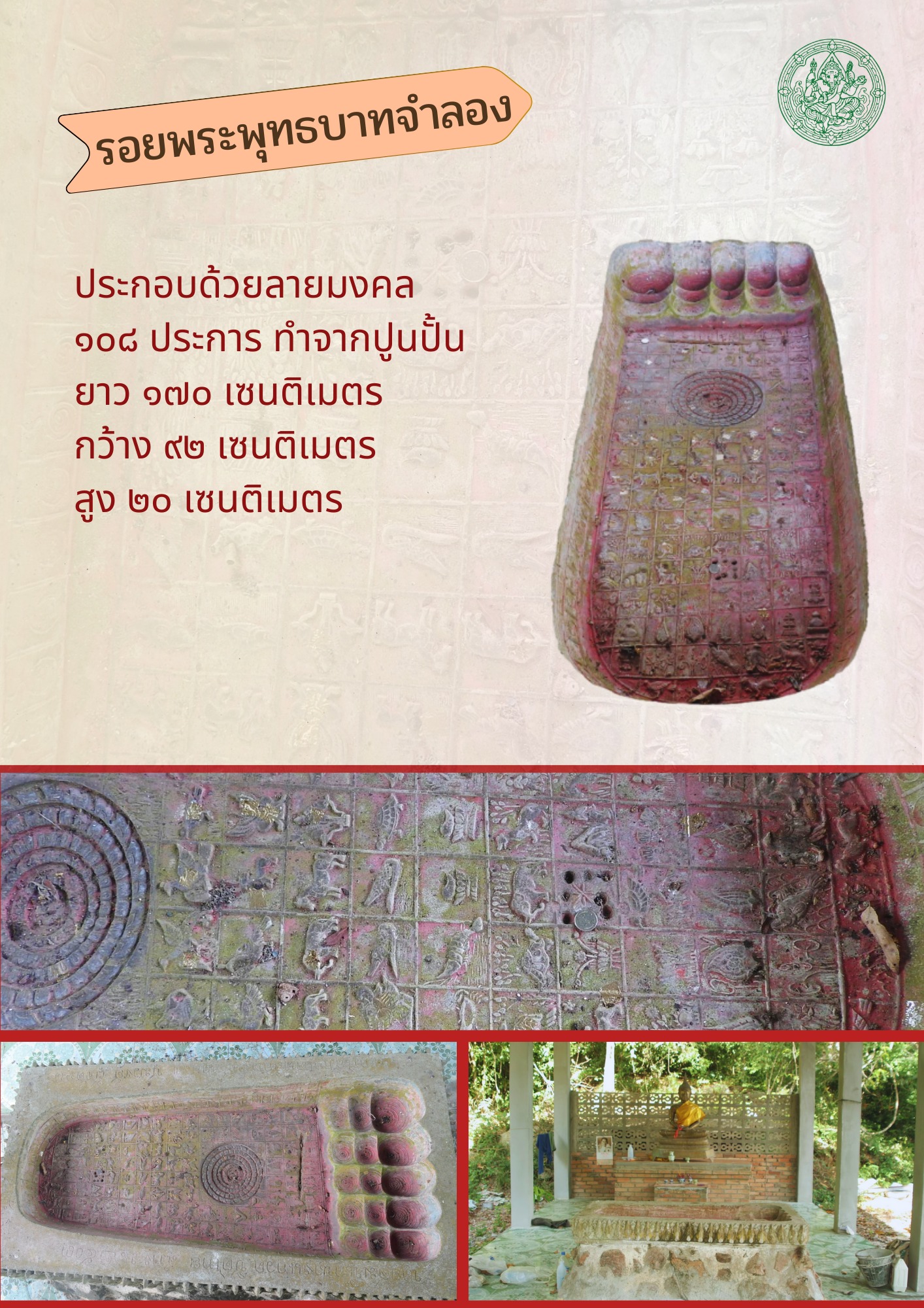 บนภูเขามีการปรับถมพื้นที่ และมีการสร้างศาลามีลักษณะเป็นอาคารโถงประดิษฐานรอยพระพุทธบาทจำลอง มีจารึกว่าสร้างขึ้นเมื่อปี พ.ศ.๒๕๐๓ และบริเวณท้ายอาคารประดิษฐานพระพุทธรูป