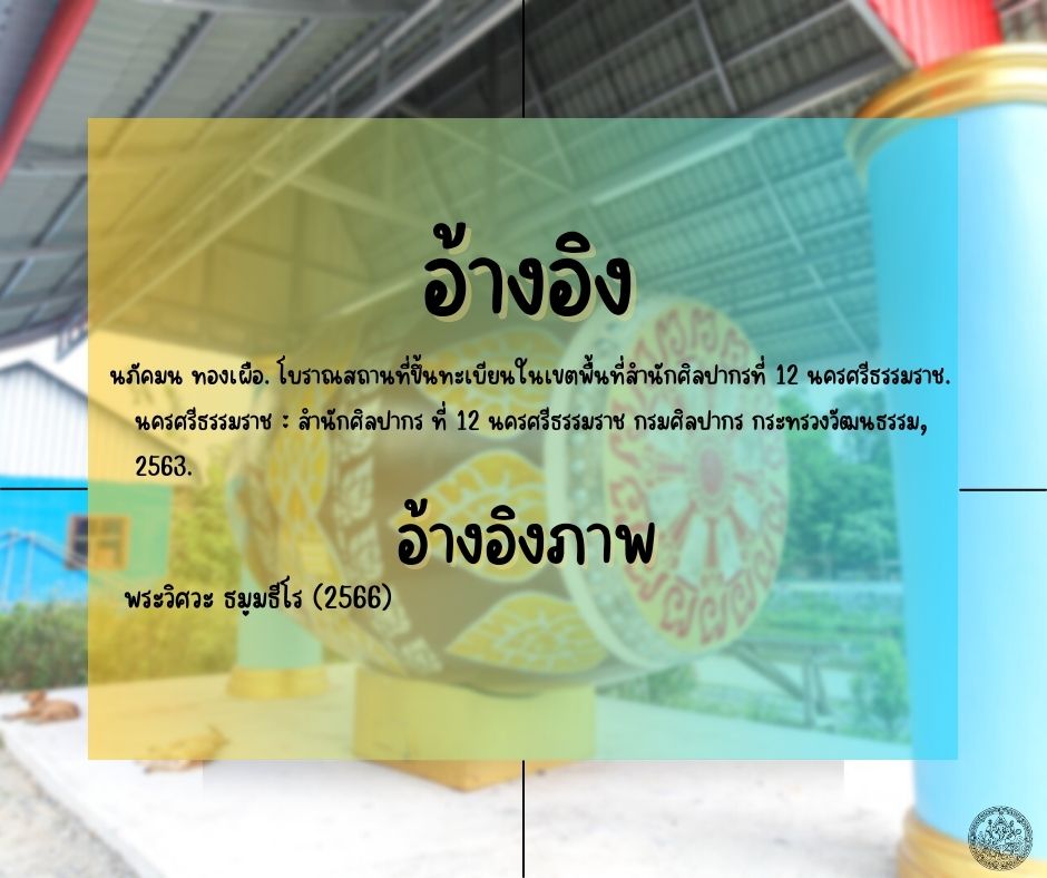 นภัคมน ทองเฝือ. โบราณสถานที่ขึ้นทะเบียนในเขตพื้นที่สำนักศิลปากรที่ ๑๒ นครศรีธรรมราช. นครศรีธรรมราช: สำนักศิลปากรที่ ๑๒ นครศรีธรรมราช กรมศิลปากร กระทรวงวัฒนธรรม, ๒๕๖๓