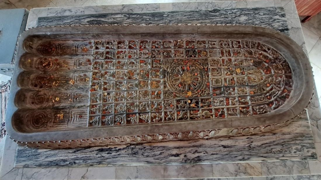 การเข้าไปในมณฑปทำได้โดยใช้บันไดด้านทิศตะวันออกและตะวันตก ด้านตะวันออกมีบันไดโค้งคู่ 35 ขั้น ส่วนด้านตะวันตกมีบันไดตรง 27 ขั้น ฐานของมณฑปเป็นฐานสี่เหลี่ยม แต่ละด้านของผนังชั้นบนมีหน้าต่าง 2 บาน หน้าต่างเหล่านี้ประดับด้วยระเบียงดินเผา และมณฑปมีประตู 4 บาน