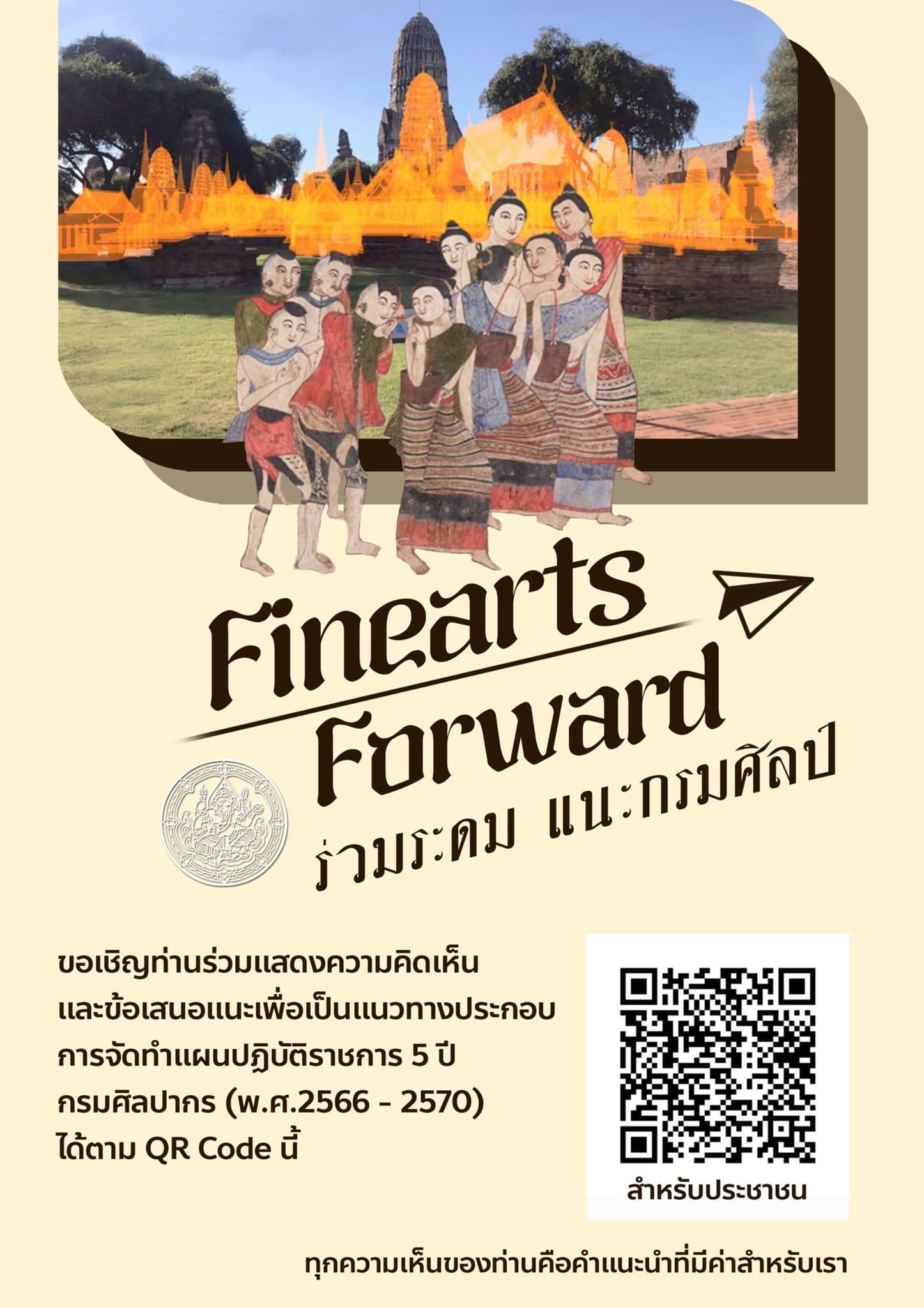 กรมศิลปากรขอเชิญชวนท่านร่วมแสดงความคิดเห็นและข้อเสนอแนะเพื่อเป็นแนวทางประกอบการจัดทำแผนปฏิบัติราชการ 5 ปี (พ.ศ. 2566 - 2570)