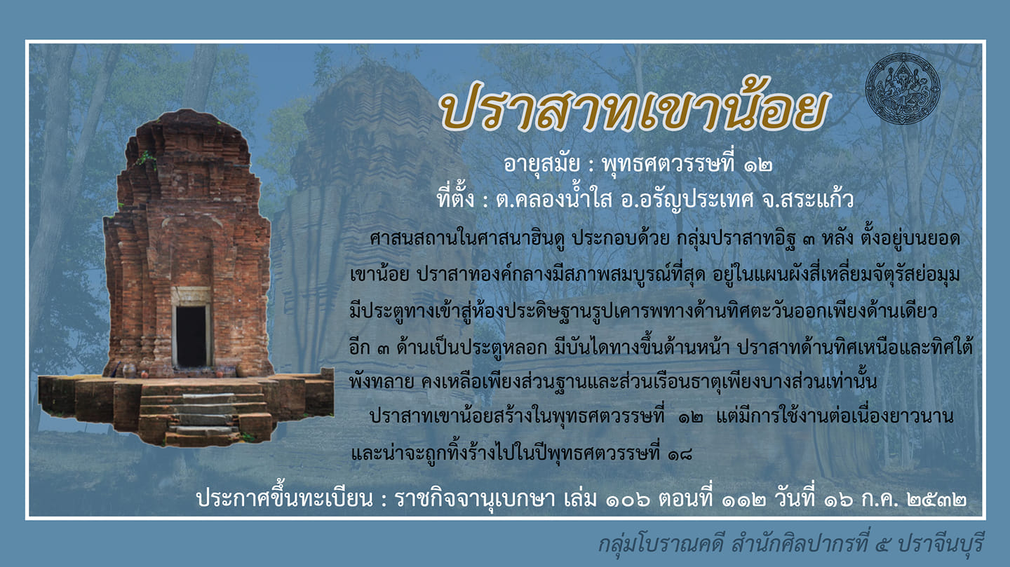 โบราณสถานที่สำคัญในจังหวัดสระแก้ว ตอนที่ ๑ ปราสาทเขาน้อย