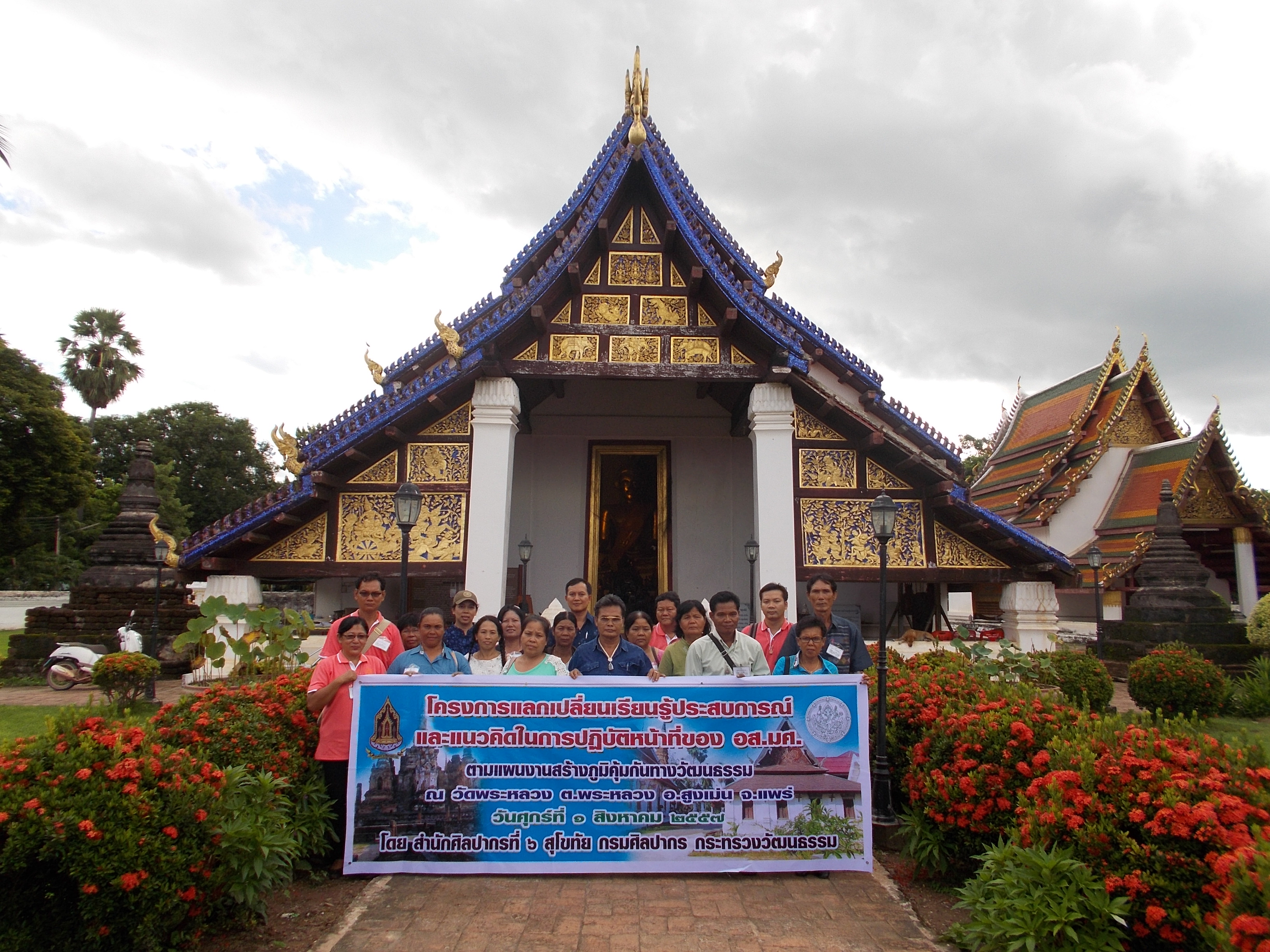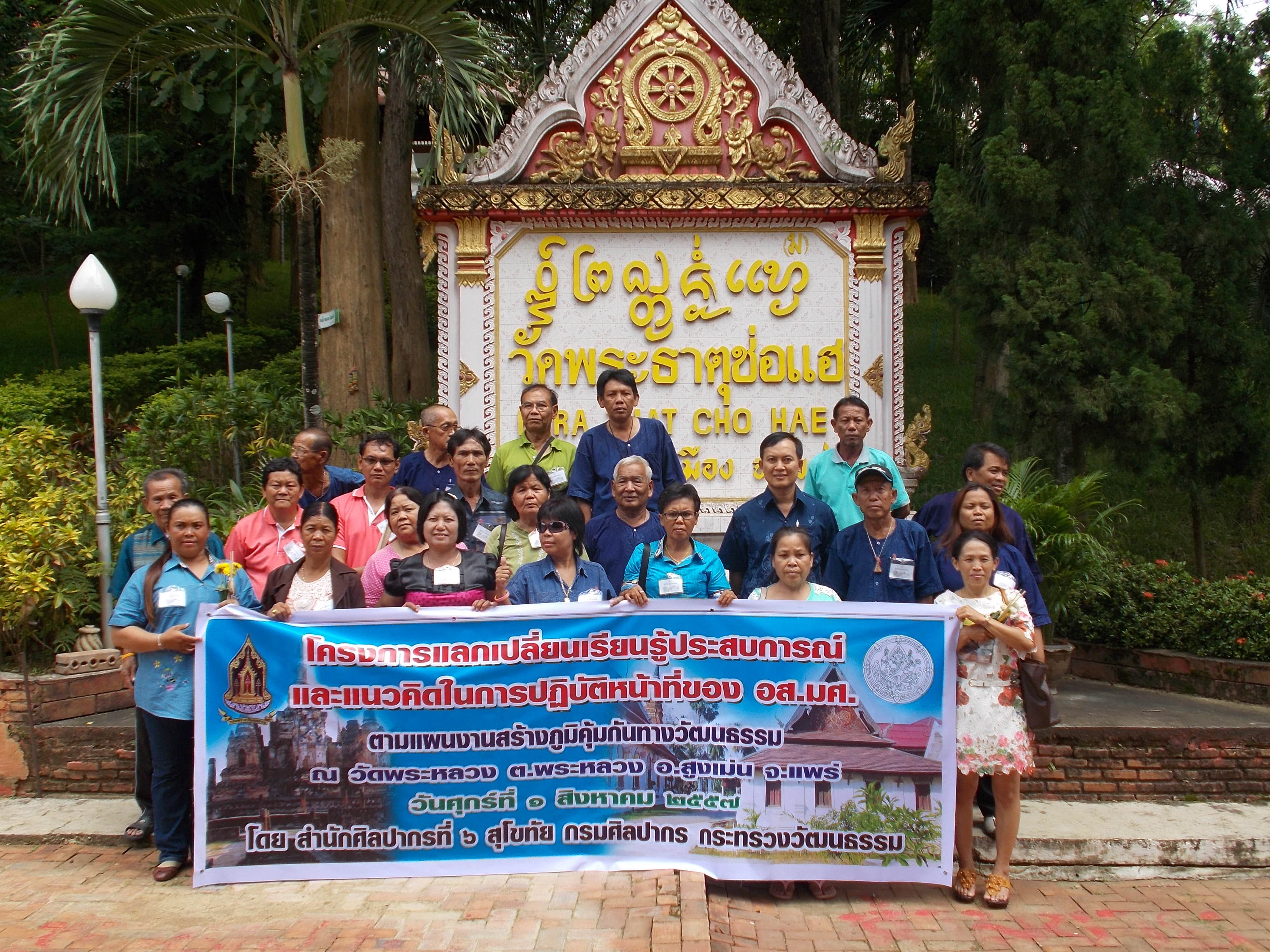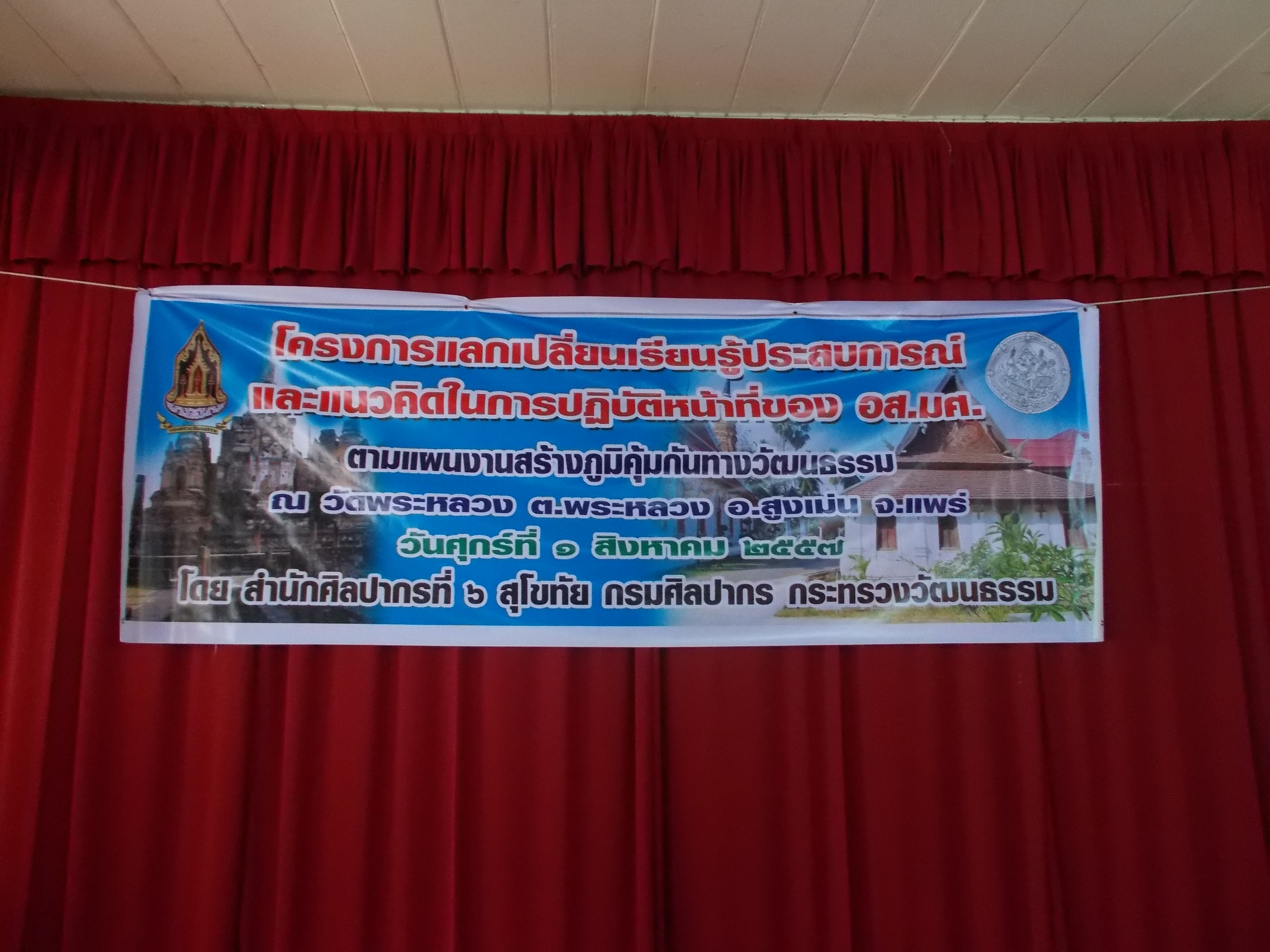 เมื่อวันที่ ๑ สิงหาคม ๒๕๕๗ สำนักศิลปากรที่ ๖ สุโขทัย ได้จัดโครงการแลกเปลี่ยนเรียนรู้ประสบการณ์และแนวคิดในการปฎิบัติหน้าที่ของ อส.มศ ณ วัดพระหลวง ตำบลพระหลวง อำเภอสูงเม่น จังหวัดแพร่