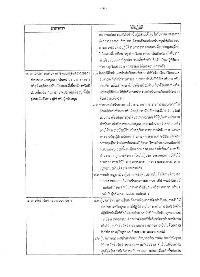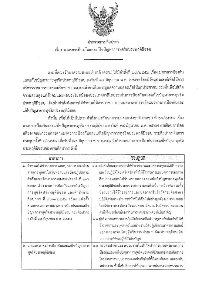 ประกาศกรมศิลปากร เรื่อง มาตรการป้องกันและแก้ไขปัญหาการทุจริตประพฤติมิชอบ