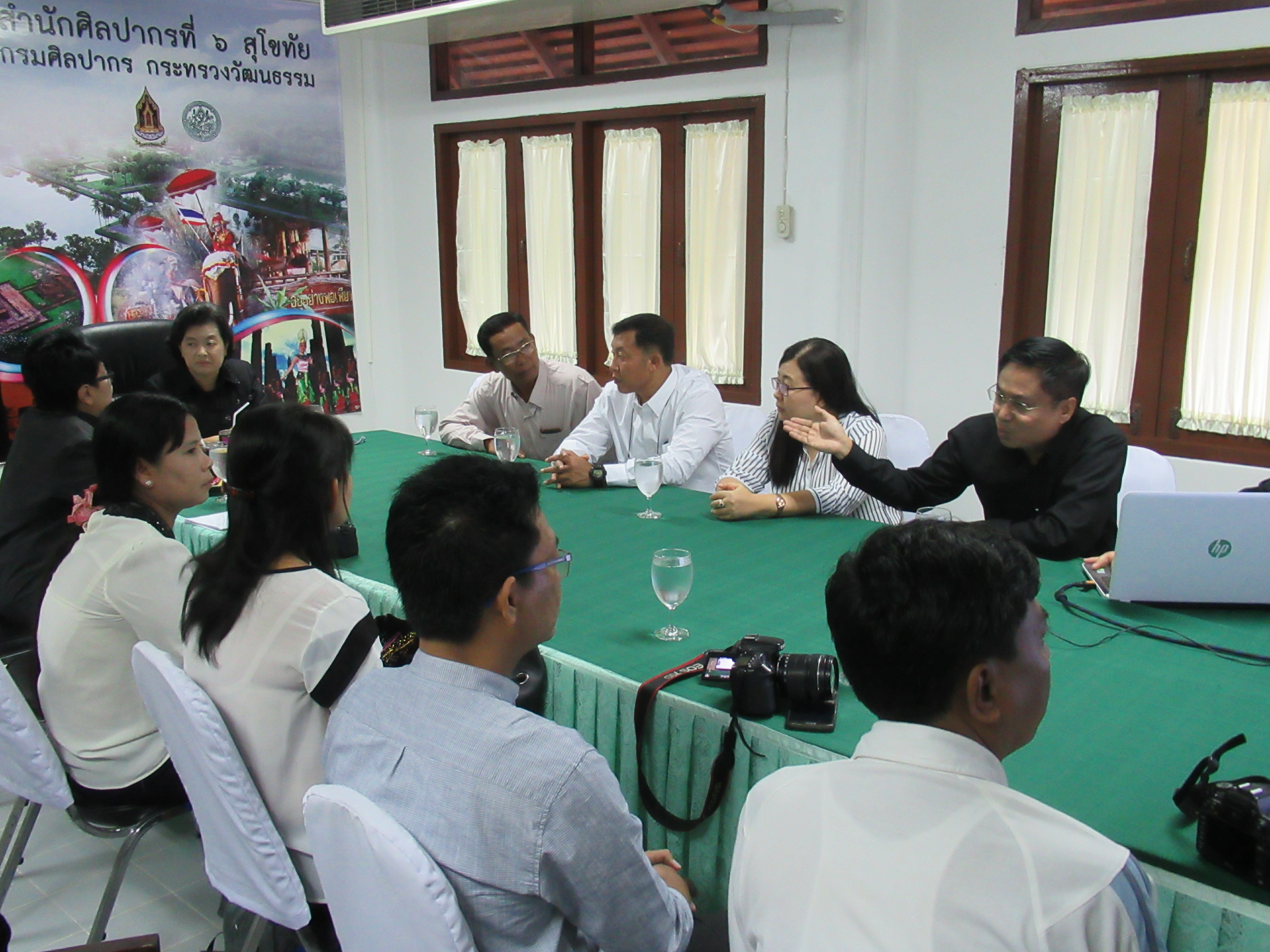 วันที่ 4 ตุลาคม พ.ศ.2560 นางสาวดวงกมล ยุทธเสรี ผู้อำนวยการสำนักศิลปากรที่ 6 สุโขทัย และร้อยเอกบุณยฤทธิ์ ฉายสุวรรณ ผู้อำนวยการอุทยานประวัติศาสตร์สุโขทัย ให้การต้อนรับคณะผู้แทนจากสหภาพเมียนมาด้านการบริหารจัดการแหล่งมรดกเมืองโบราณ รวมทั้งผู้เชี่ยวชาญและเจ้าหน้าที่