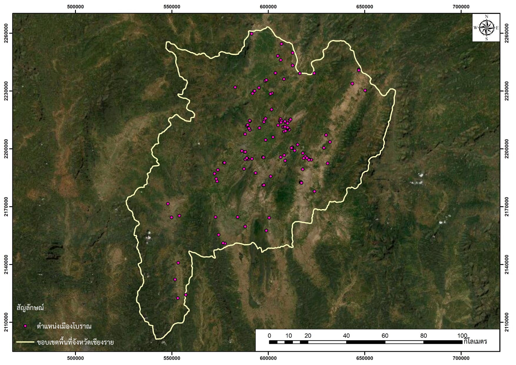 จากการศึกษาภาพถ่ายดาวเทียมของ อาจารย์ทิวา ศุภจรรยา และจากการสำรวจทางโบราณคดีของกรมศิลปากร พบเมืองโบราณในแอ่งแอ่งเชียงรายมากกว่า 120 เมือง และบริเวณที่มีแนวโน้มว่าจะเป็นเมืองโบราณอีกประมาณ 40 แห่ง