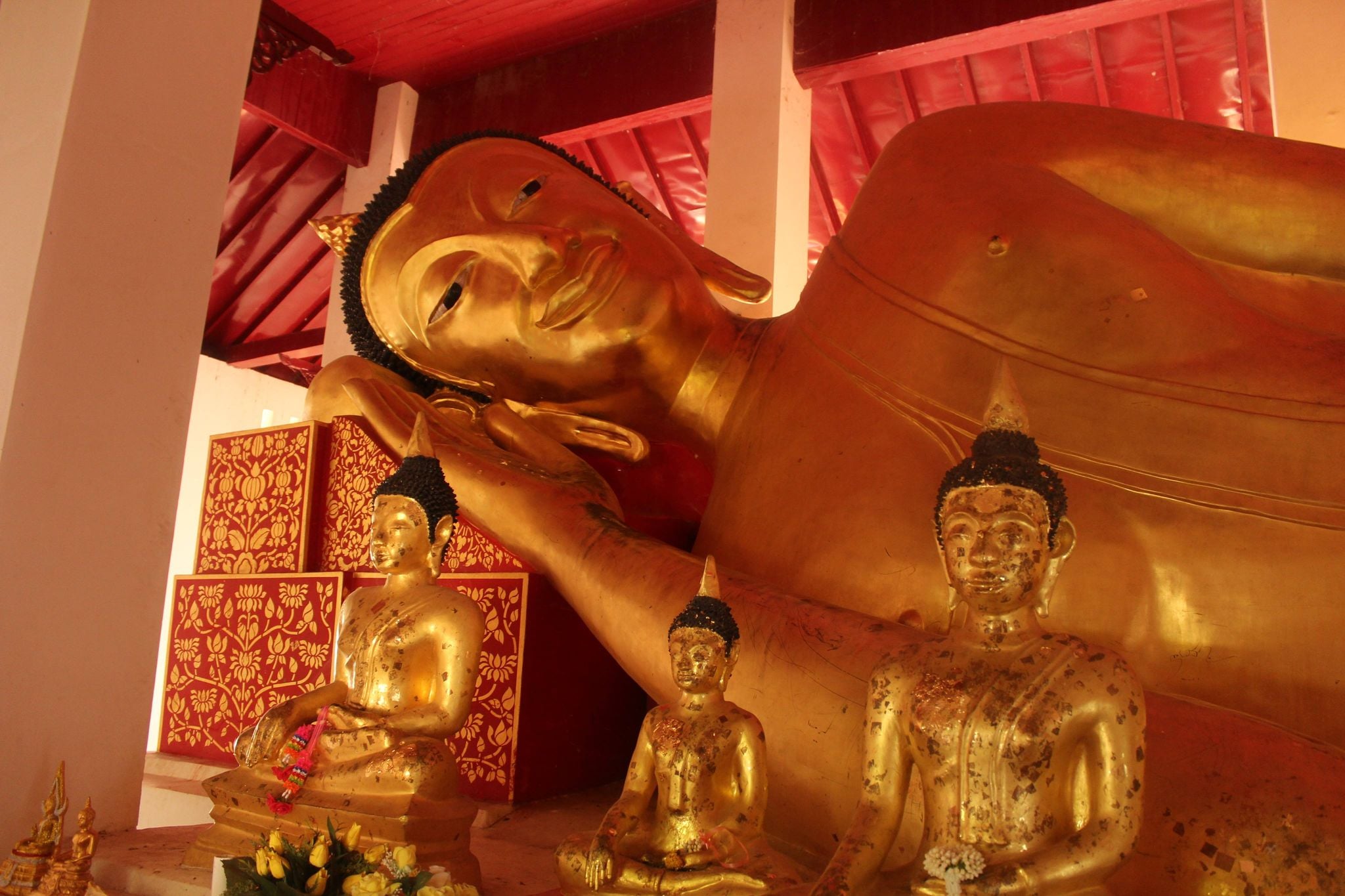 นอกจากศิลปกรรมข้างต้นแล้ว ยังปรากฏพระพุทธไสยาสน์เป็นพระนอนปูนปั้นขนาดใหญ่ พบเพียงองค์เดียวที่ปรากฏในเมืองน่าน ลักษณะพุทธศิลป์อาจได้รับอิทธิพลจากศิลปะอยุธยาโดยเฉพาะพระพักตร์ และชายจีวรที่แหลมงองุ้มลง ที่พระเขนยมีจารึกกล่าวถึงนางแสนพลัวสร้างพระพุทธรูปไสยาสน์ พ.ศ.2129 ความว่า “…จุลศกราชได้ 948 ตัว (พ.ศ.2129) อุยาสิกานามแสนพลัวประกอบด้วยสัทธา สร้างพระพุทธปฏิมาองค์นี้ไว้….” หากเมื่อนำไปเทียบกับรัชสมัยแล้วเจ้าผู้ครองนครน่านแล้วจะตรงกับรัชสมัยของพญาหน่อคำเสถียรไชยสงคราม