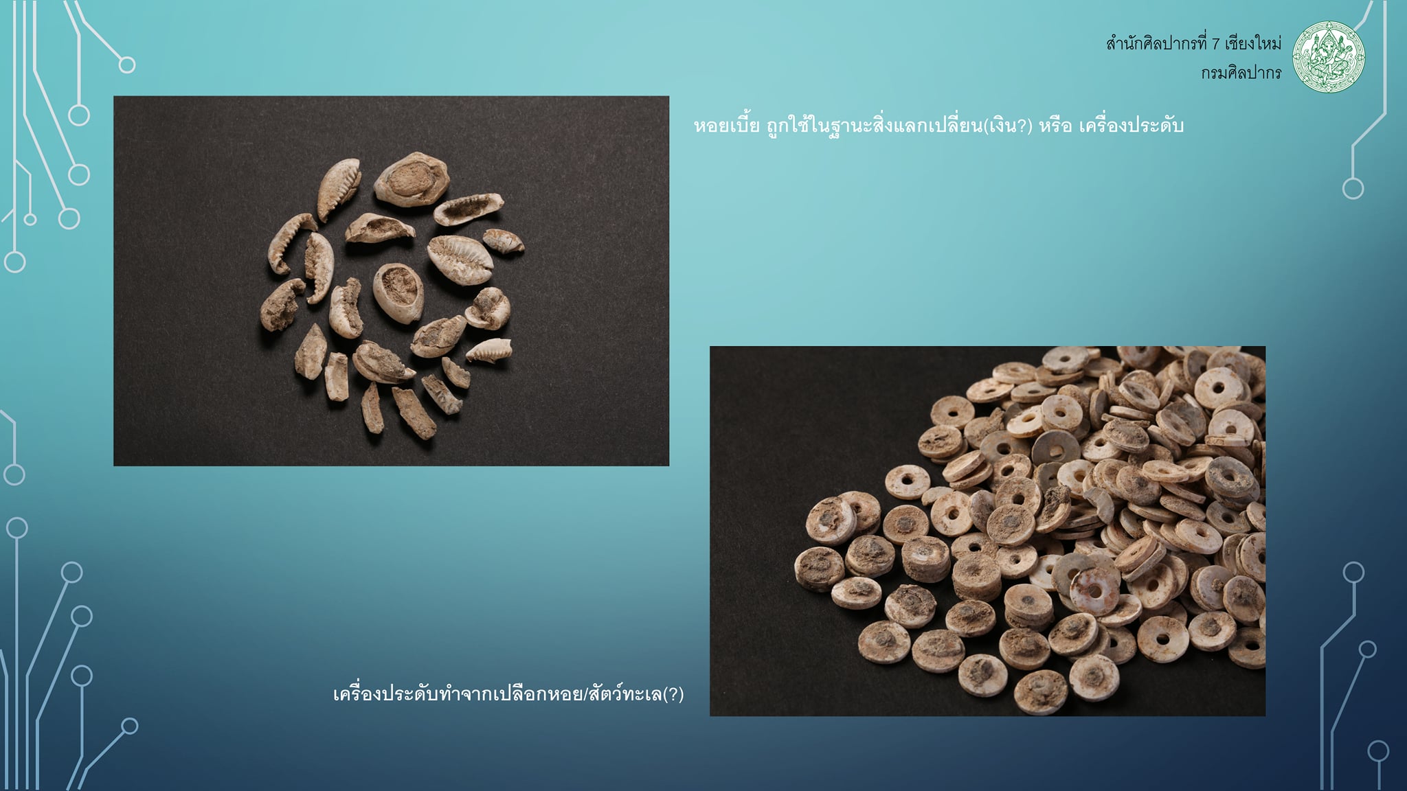 2.2 โบราณนิเวศวัตถุ ได้แก่ หอยเบี้ย