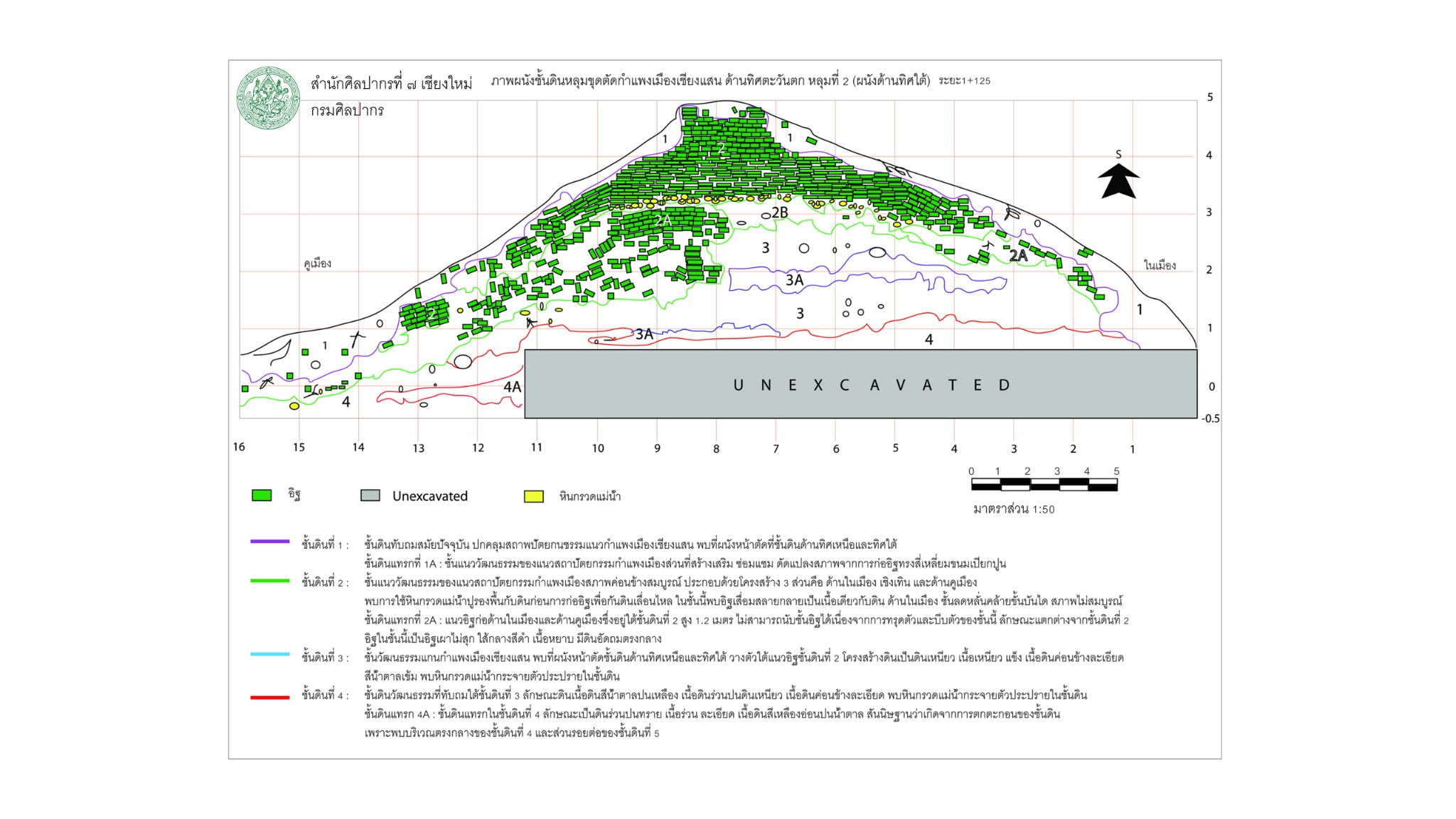 แต่ทั้งนี้มีข้อมูลทางโบราณคดีที่น่าสนใจที่ผู้เขียนอยากนำมาบอกเล่าเพิ่มเติมนอกเหนือจากข้อมูลจากเอกสารประวัติศาสตร์ นั่นคือข้อมูลจากการขุดค้นทางโบราณคดีกำแพงเมืองเชียงแสนในปี 2543 และ 2552-2557 ที่กรมศิลปากรได้ขุดตัดผ่ากำแพงเมืองเชียงแสนเพื่อตรวจสอบชั้นดินทับถมของคันกำแพงเมือง จากการขุดทางโบราณคดีพบว่า กำแพงเมืองเชียงแสนที่เราเห็น แท้จริงมีกำแพงเมืองสมัยแรกอยู่ด้านใน จากการส่งตัวอย่างอิฐและดินหาค่าอายุทางวิทยาศาสตร์ด้วยวิธีเรืองแสงความร้อน ปี 2543 ดำเนินการโดยคุณศิริพงษ์ สมวรรณ นักศึกษาภาคฟิสิกส์ประยุกต์ คณะวิทยาศาสตร์ มหาวิทยาลัยเชียงใหม่ และปี 2557 โดยภาควิชาวิทยาศาสตร์พื้นพิภพ มหาวิทยาลัยเกษตรศาสตร์ ได้ค่าอายุกำแพงเมืองเชียงแสนสมัยแรกราวพุทธศตวรรษที่ 10-12 (พ.ศ.900-1200) และกำแพงเมืองสมัยที่สองที่ครอบทับอยู่มีช่วงเวลาราวพุทธศตวรรษที่ 19 - 20 (พ.ศ.1800-2000) ค่าอายุดังกล่าวมีนัยยะอย่างไร