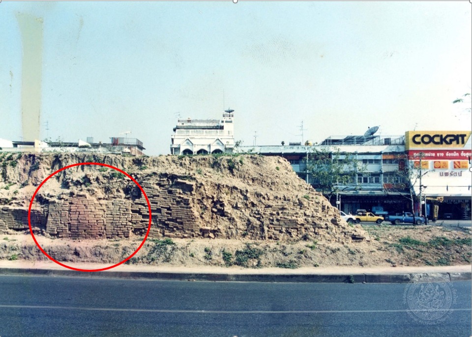 *** หลักฐานจากการขุดศึกษาทางโบราณคดีกำแพงเมืองเชียงใหม่ในปี 2538 โดยกรมศิลปากร ซึ่งทำการขุดบริเวณกำแพงเมืองเชียงใหม่ส่วนที่ต่อจากป้อมมุมเมือง และประตูเมือง(ประตูช้างเผือกและประตูสวนดอก) และบริเวณแนวกำแพงเมืองเชียงใหม่ชั้นนอก (กำแพงดิน) ด้านทิศตะวันตกของโรงพยาบาลสวนปรุง