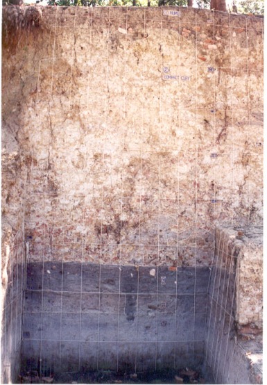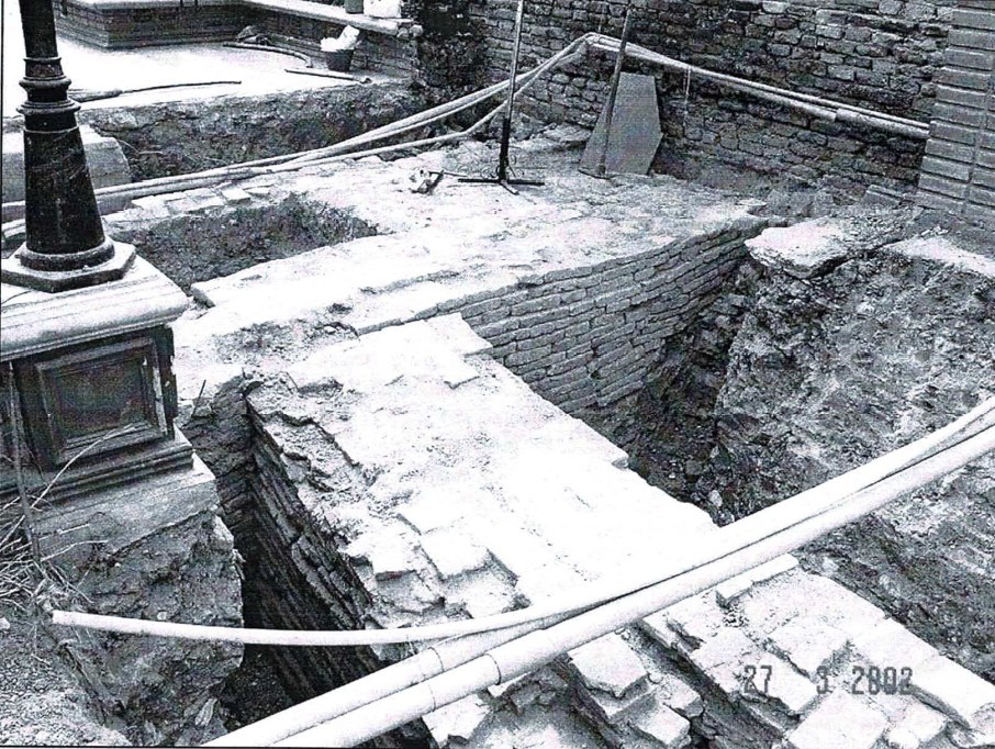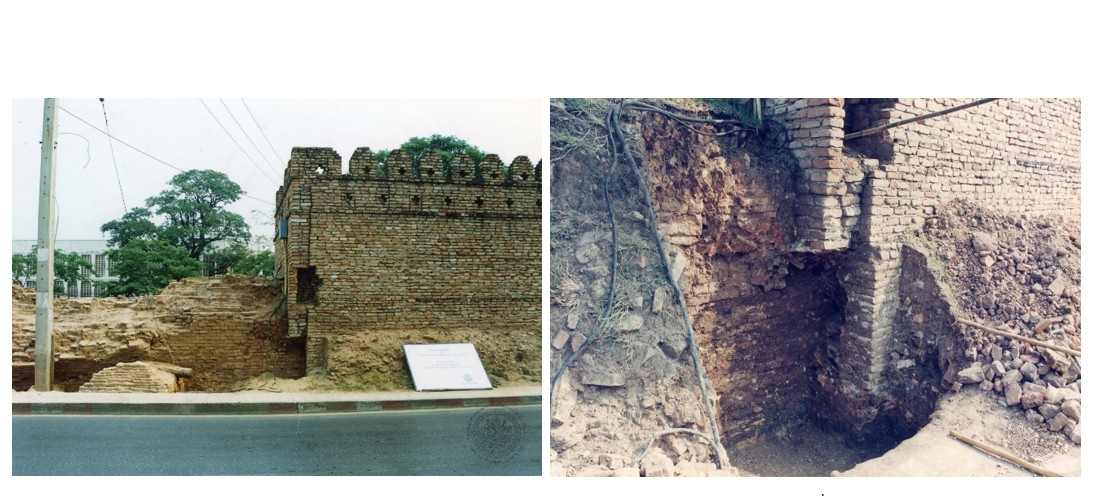 *** ส่วนกำแพงเมืองด้านตะวันตก การไหลของกระแสน้ำคงมีอัตราเร่งต่ำ การก่อสร้างกำแพงเมืองด้านนี้จึงดำเนินการเพียงการก่อกำแพงอิฐครอบแกนดิน โดยฐานกำแพงตั้งอยู่ในระดับใกล้เคียงกับระดับพื้นถนนปัจจุบัน