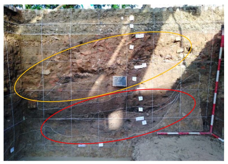 *** ทั้งนี้ในส่วนของกำแพงดินหรือกำแพงเมืองชั้นนอกนั้นมีผลการขุดทางโบราณคดีในปี 2538 และปี 2546 พบว่าใต้ชั้นคันดินกำแพงเมืองชั้นนอกเป็นชั้นดินที่พบภาชนะดินเผาประเภทต่างๆ จากแหล่งเตาล้านนาและเครื่องถ้วยจีนสมัยราชวงศ์หมิงที่มีอายุอยู่ในช่วงพุทธศตวรรษที่ 20-21 จึงสรุปได้ว่าบริเวณพื้นที่ดังกล่าวเป็นพื้นที่อยู่อาศัยของชุมชนขนาดใหญ่ในช่วงพุทธศตวรรษที่ 20-21 ก่อนการเกิดขึ้นของกำแพงเมืองชั้นนอก ซึ่ง หากเจาะจงระยะเวลาลงไปอีกนิด อาจสันนิษฐานได้ว่ากำแพงเมืองชั้นนอกน่าจะเกิดขึ้นในช่วงปี 1911-2060 จากการกำหนดอายุจากเครื่องถ้วยจีน และเอกสารโคลงนิราศหริภุญชัยที่น่าจะแต่งขึ้นในปี 2060 ที่เนื้อความกล่าวถึงการเดินทางจากเมืองเชียงใหม่ไปเมืองลำพูนโดยผ่านกำแพงเมืองถึงสองชั้น