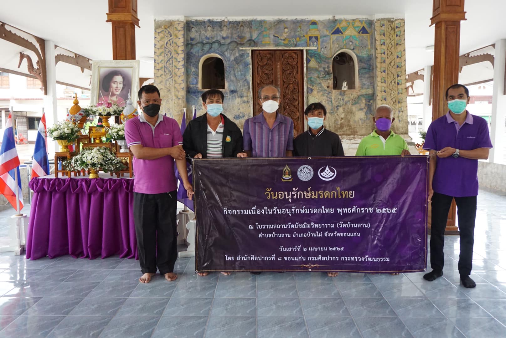 วันเสาร์ที่ ๒ เมษายน ๒๕๖๕ เวลา ๐๙.๐๐ น. สำนักศิลปากรที่ ๘ ขอนแก่น จัดกิจกรรมเนื่องในวันอนุรักษ์มรดกไทย พุทธศักราช ๒๕๖๕ ณ วัดมัชฌิมวิทยาราม (วัดบ้านลาน) ตำบลบ้านลาน อำเภอบ้านไผ่ จังหวัดขอนแก่น ภายในงานมีการจัดกิจกรรมบรรยายให้ความรู้ และกิจกรรมการทำความสะอาดโบราณสถาน โดยมีอาสาสมัครท้องถิ่นดูแลรักษามรดกทางศิลปวัฒนธรรม (อส.มศ.) และประชาชนทั่วไปเข้าร่วมกิจกรรม