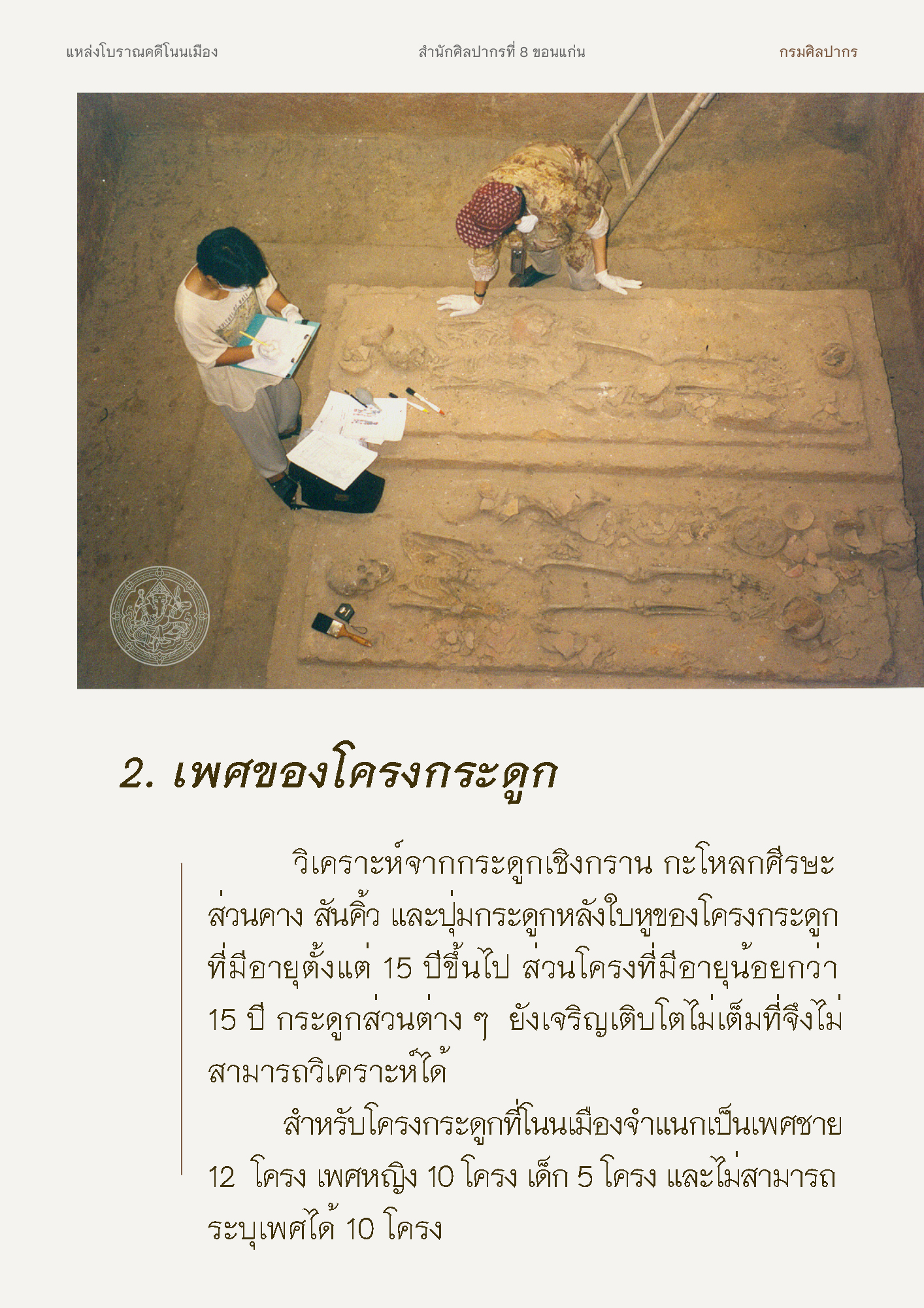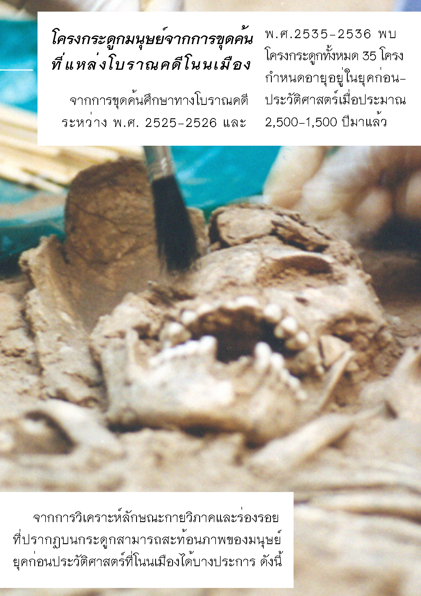 โครงกระดูกมนุษย์จากการขุดค้นที่แหล่งโบราณคดีโนนเมือง