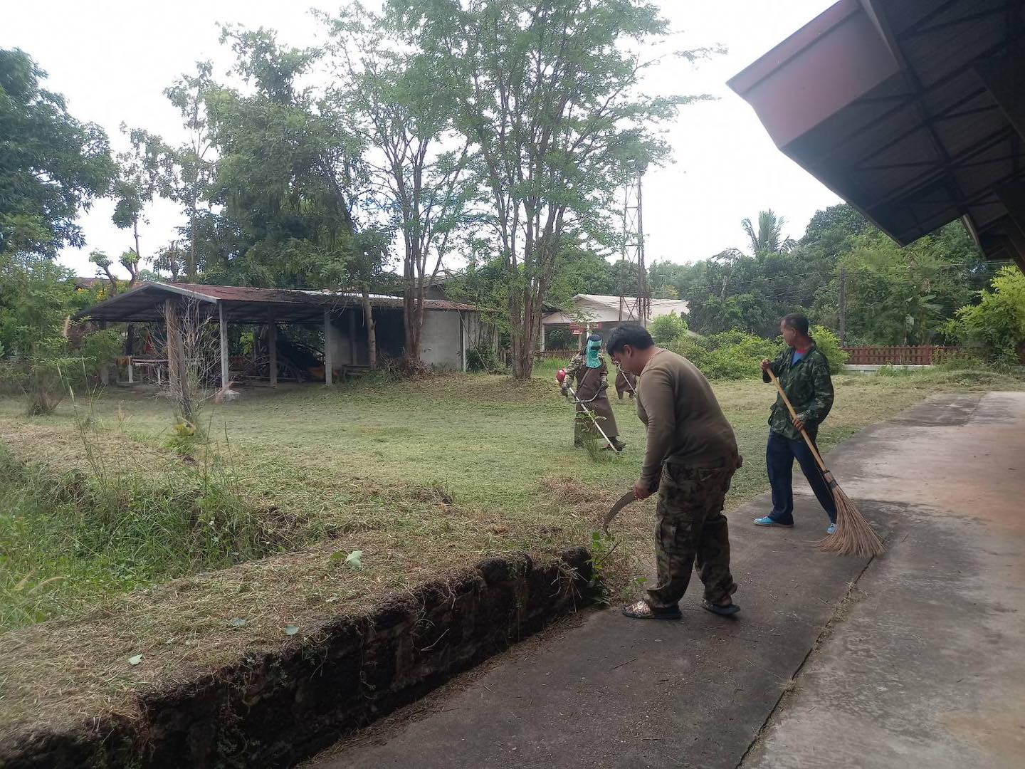 ถากถางกำจัดวัชพืชในเขตพื้นที่โบราณสถานวัดบ้านโคกคอน (พระธาตุมีชัย) บ้านโคกคอน ตำบลโคกสี อำเภอสว่างแดนดิน จังหวัดสกลนคร