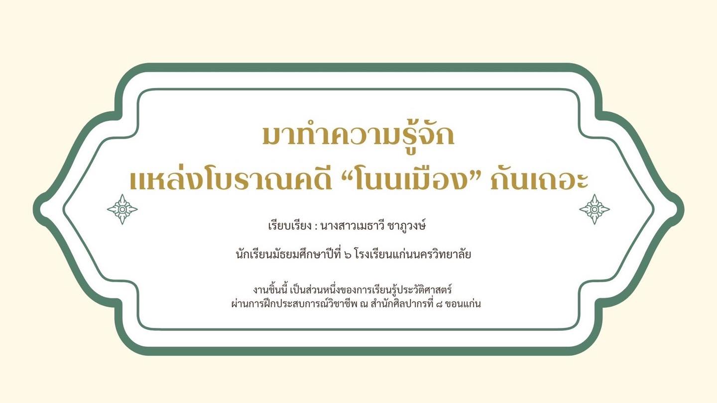 งานชิ้นนี้เป็นส่วนหนึ่งของการเรียนรู้ประวัติศาสตร์ ผ่านการฝึกประสบการณ์วิชาชีพ ณ สำนักศิลปากรที่ ๘ ขอนแก่น