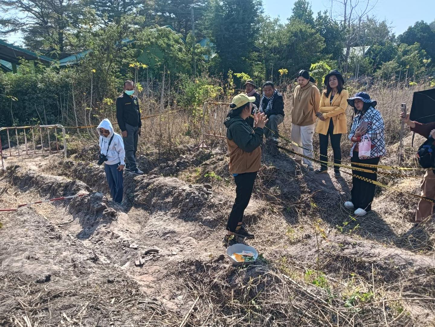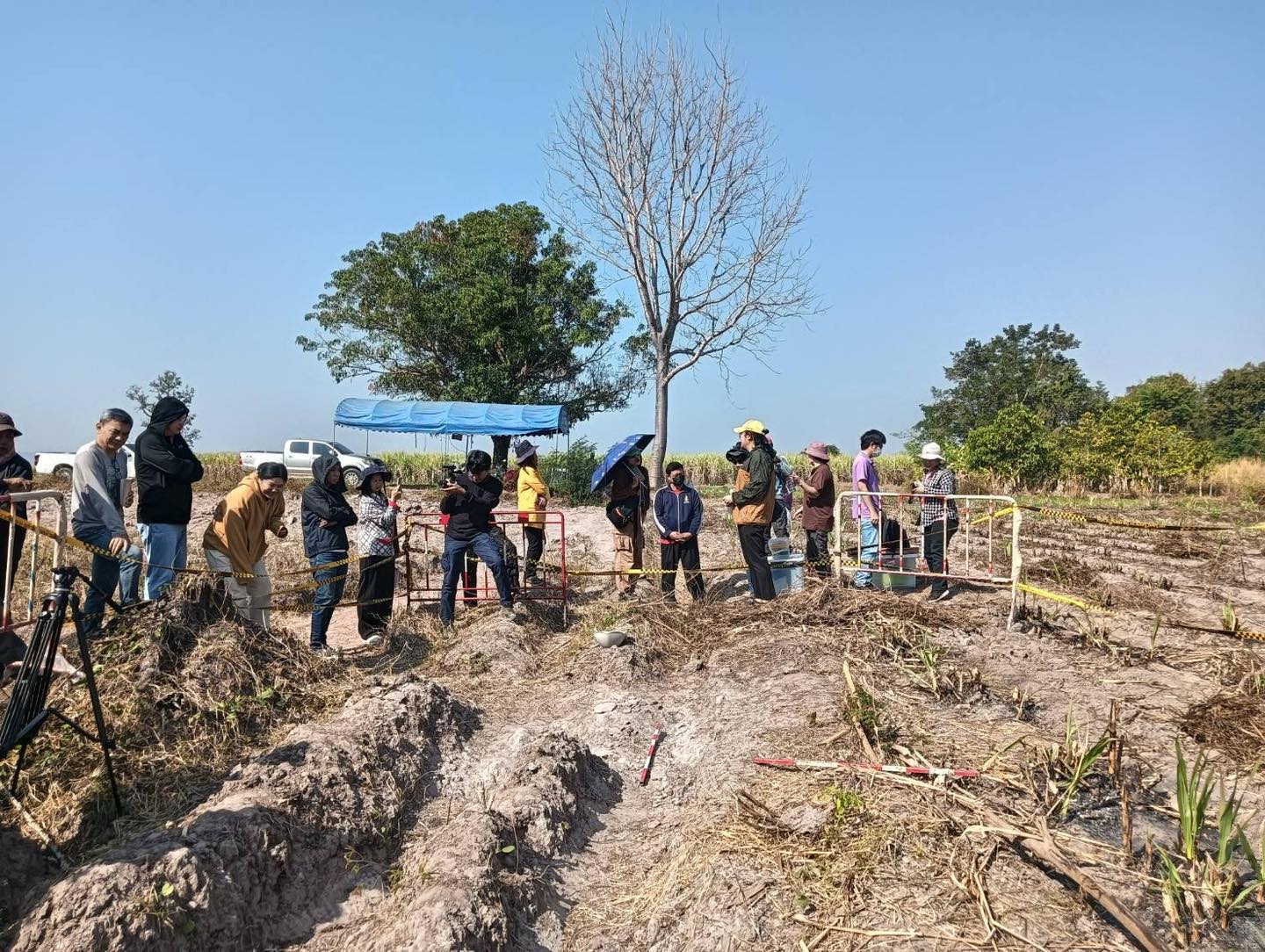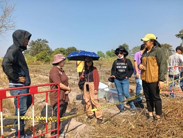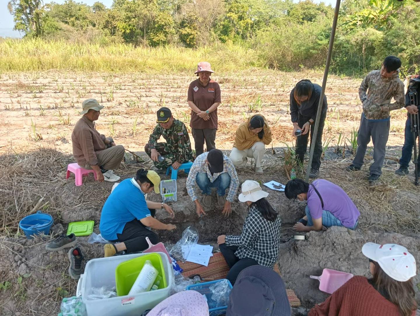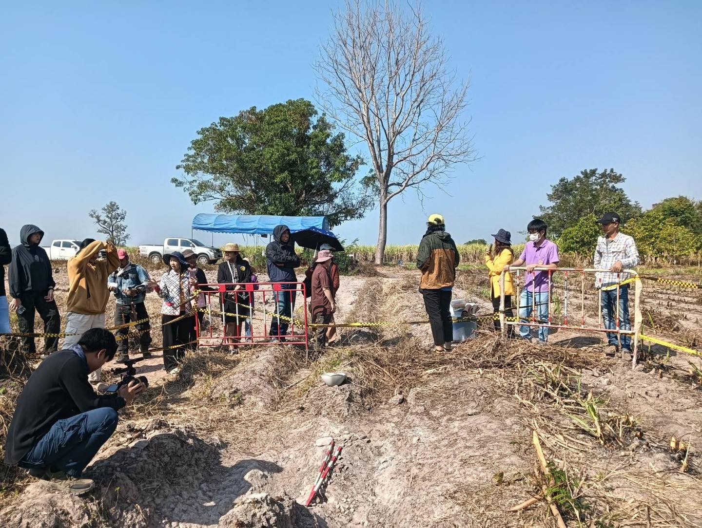 วันที่ 7 มกราคม 2568 นางสาวทิพย์วรรณ วงศ์อัสสไพบูลย์ นักโบราณคดีชำนาญการ พร้อมด้วยเจ้าหน้าที่สำนักศิลปากรที่ 8 ขอนแก่น ร่วมกับทีมอุทยานธรณีขอนแก่น เจ้าหน้าที่อุทยานแห่งชาติภูเวียง เจ้าหน้าที่เทศบาลตำบลในเมือง อำเภอเวียงเก่า จังหวัดขอนแก่น และประชาชนในพื้นที่ ร่วมสำรวจและเก็บกู้หลักฐานทางโบราณคดี ณ แหล่งโบราณคดีโคกสนามบิน ตำบลในเมือง อำเภอเวียงเก่า จังหวัดขอนแก่น หลักฐานทางโบราณคดีที่พบได้แก่ โครงกระดูกมนุษย์ ลูกปัดแก้ว แวดินเผา เครื่องมือเหล็ก เปลือกหอย กระดูกสัตว์ เศษภาชนะดินเผา เป็นต้น เบื้องต้นกำหนดอายุอยู่ในสมัยก่อนประวัติศาสตร์ตอนปลาย ราว 2,500- 1,500 ปีมาแล้ว