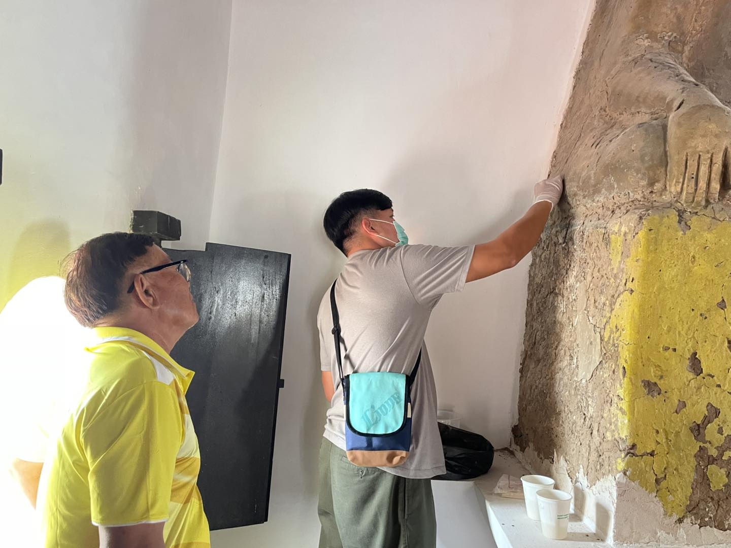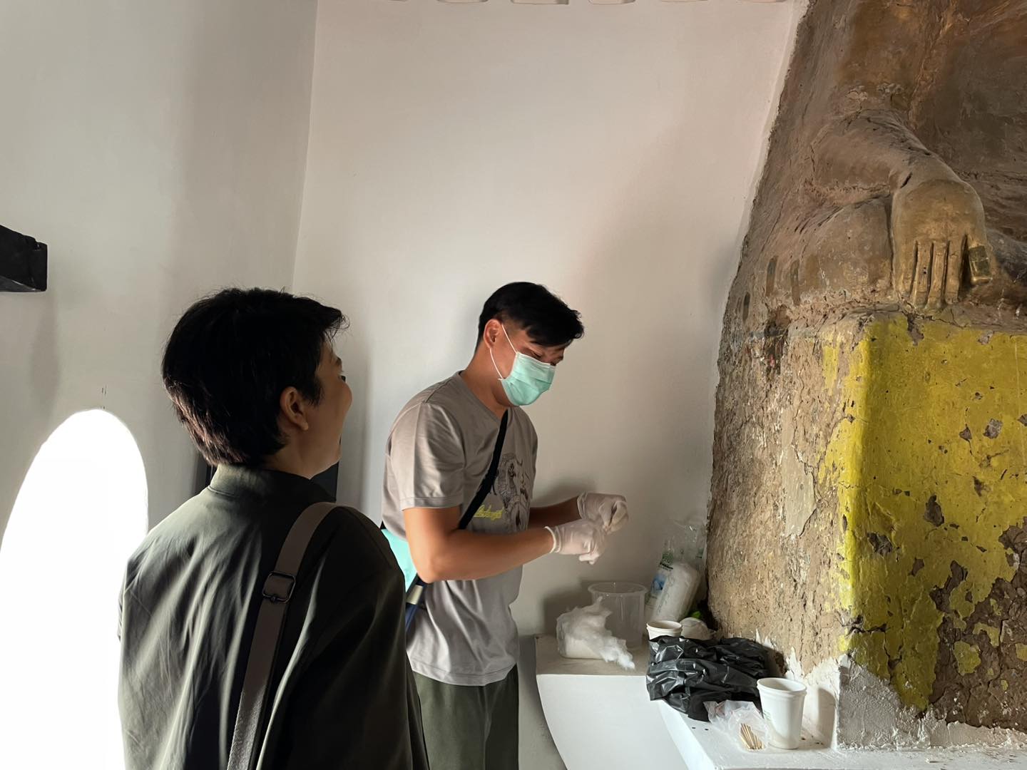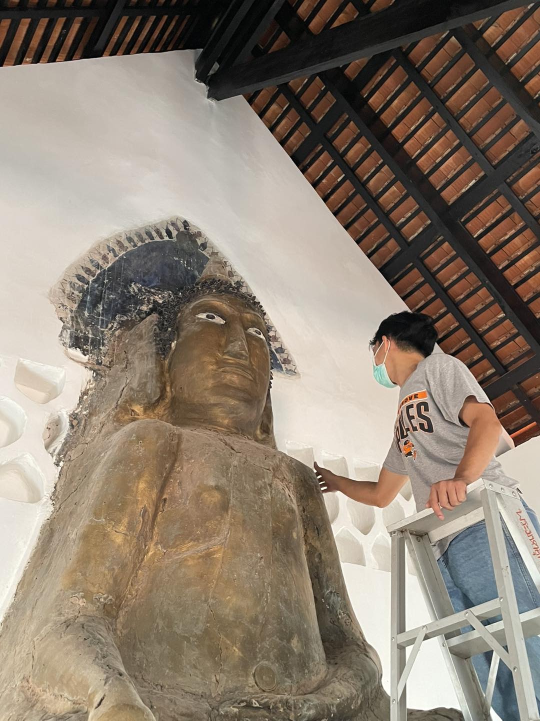 ตรวจสอบชั้นสี และสำรวจความเสียหายขององค์พระประธาน ณ วัดลัฏฐิวัน ตำบลคอนฉิม อำเภอเเวงใหญ่ จังหวัดขอนแก่น