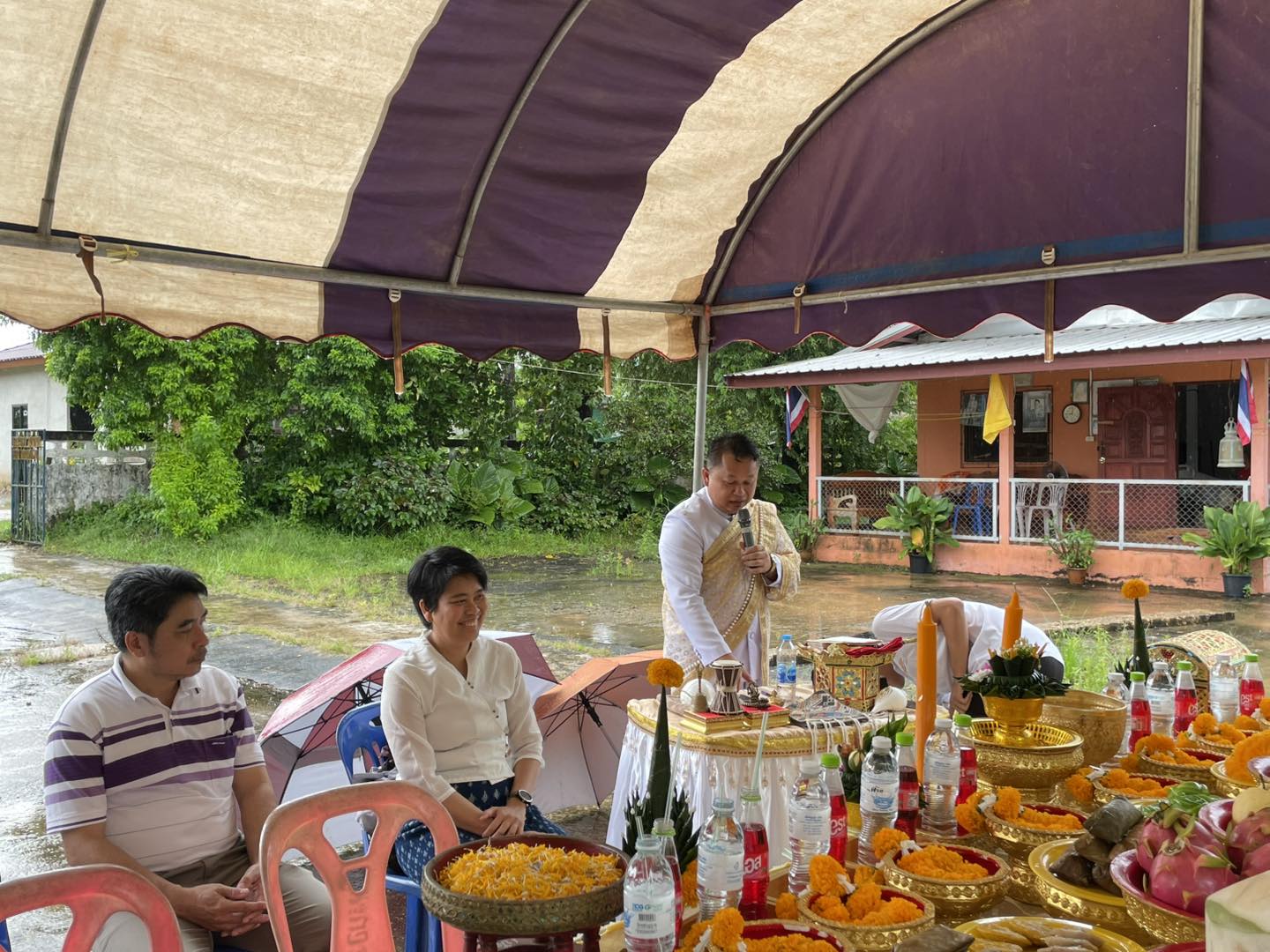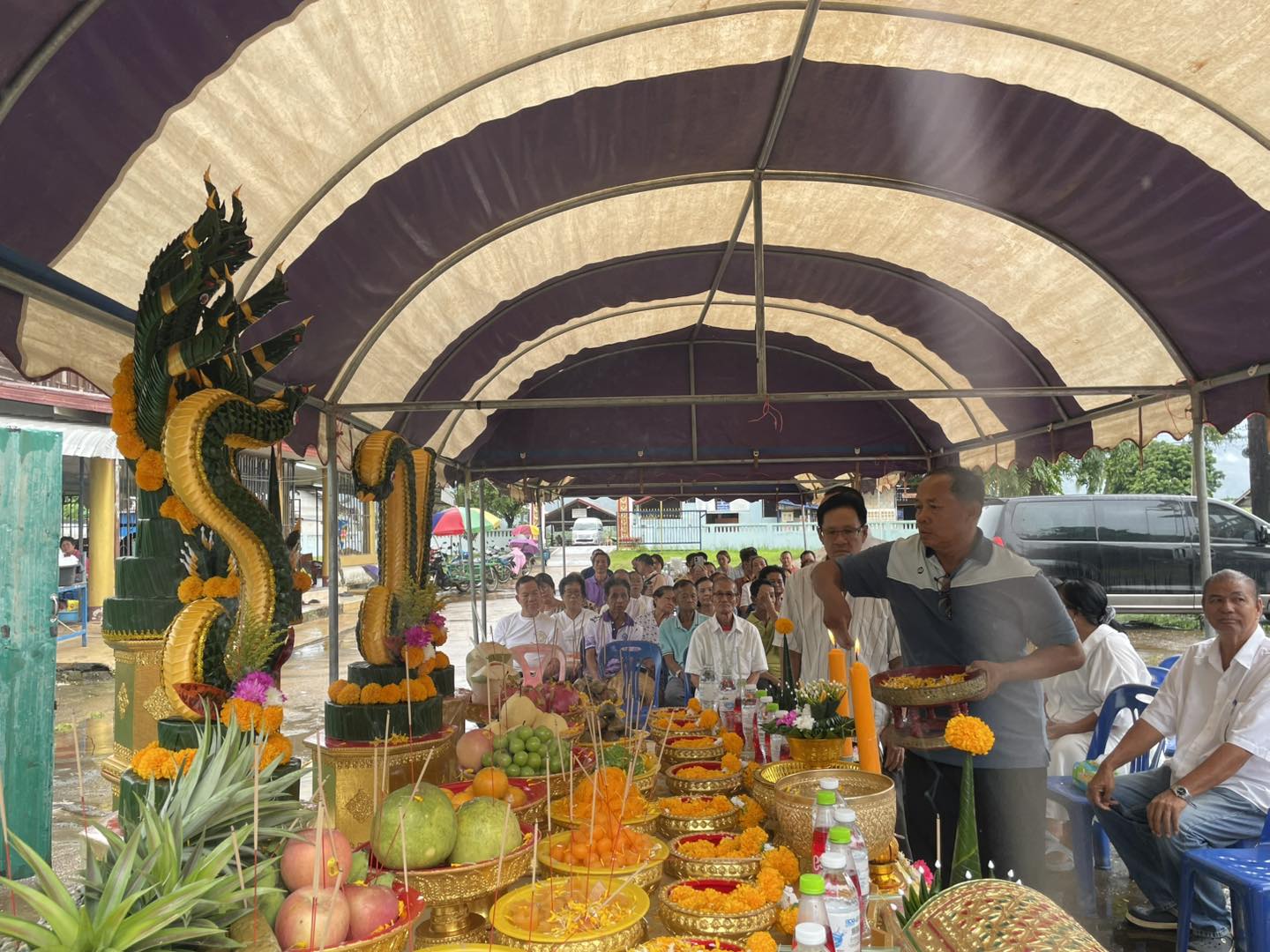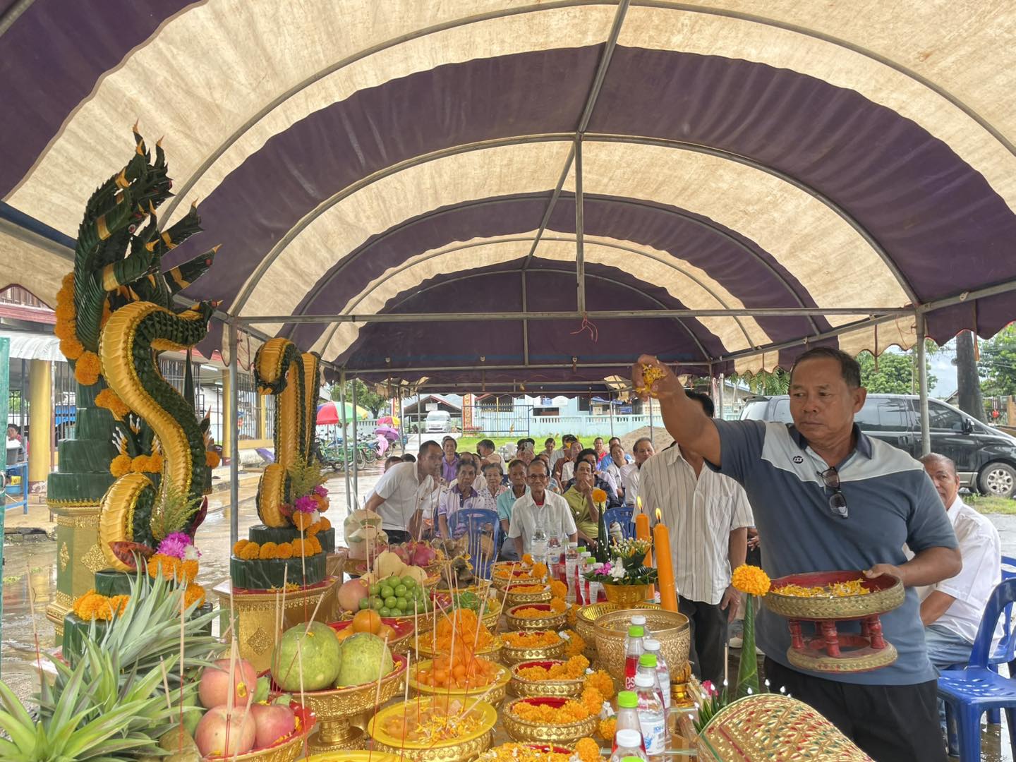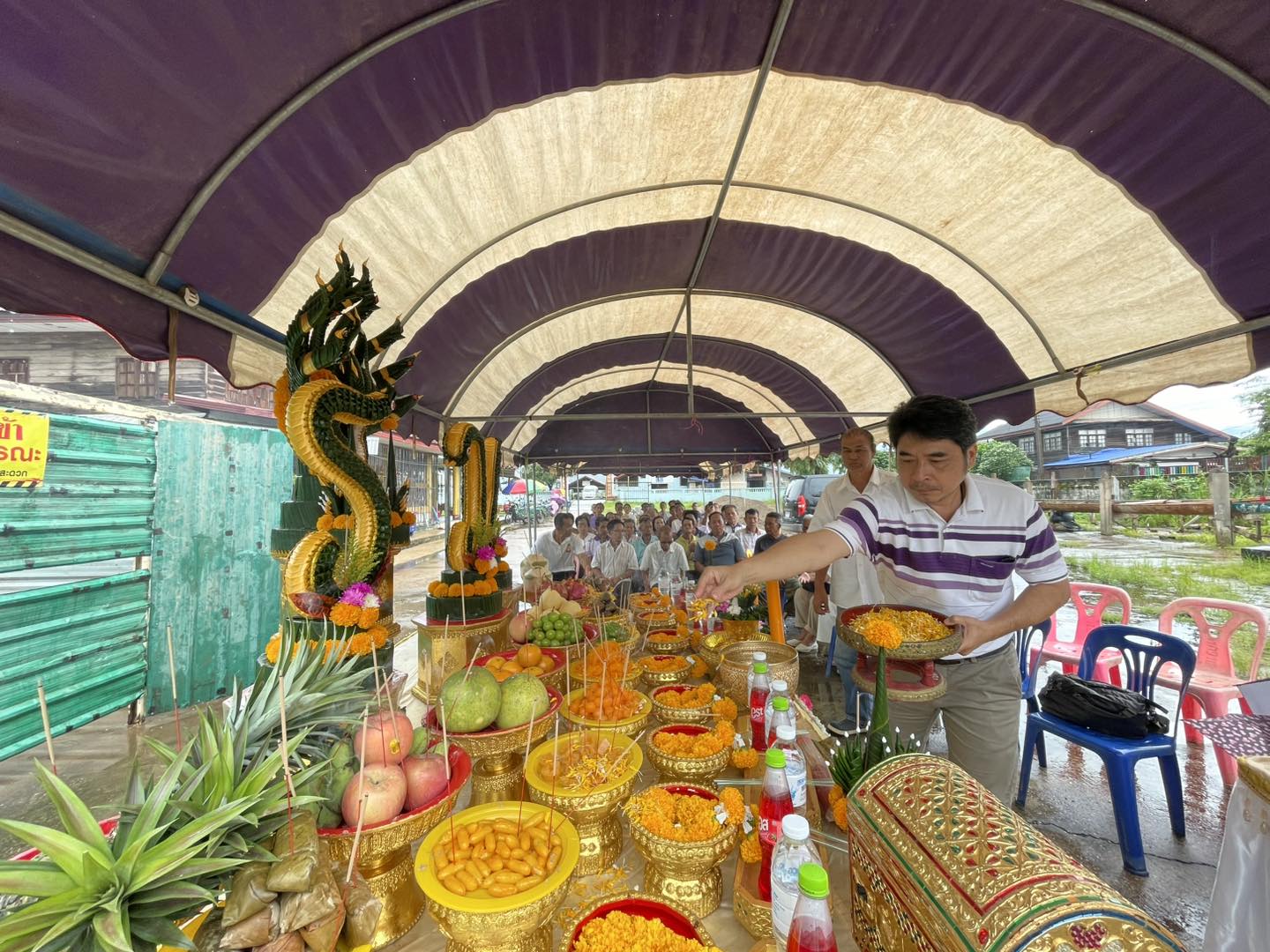 ร่วมพิธีบวงสรวงในการบูรณะโครงการบูรณะและปรับปรุงภูมิทัศน์อุโบสถ (สิม) วัดจอมทองธรรมคุณ ตำบลหอคำ อำเภอเมืองบึงกาฬ จังหวัดบึงกาฬ