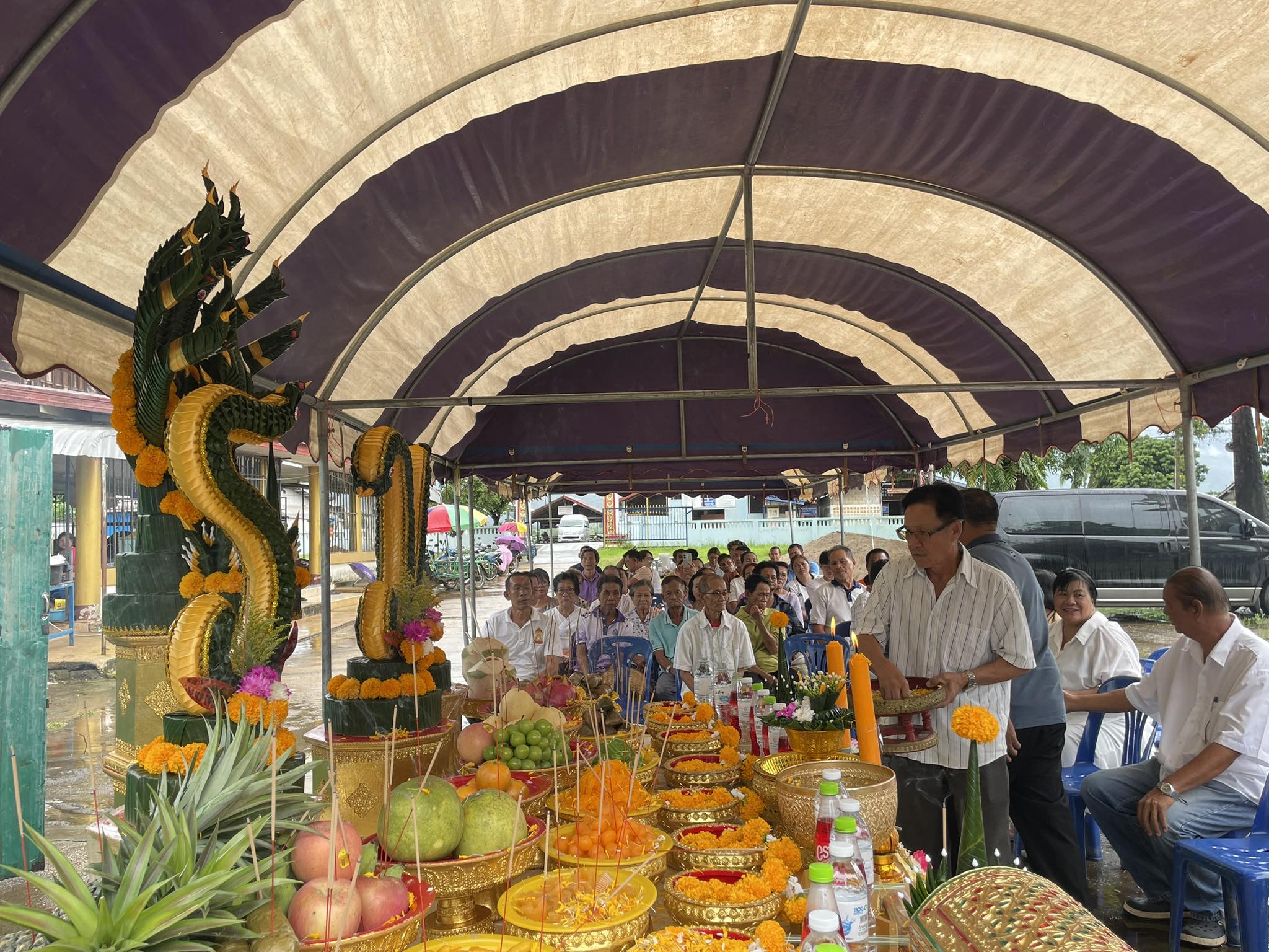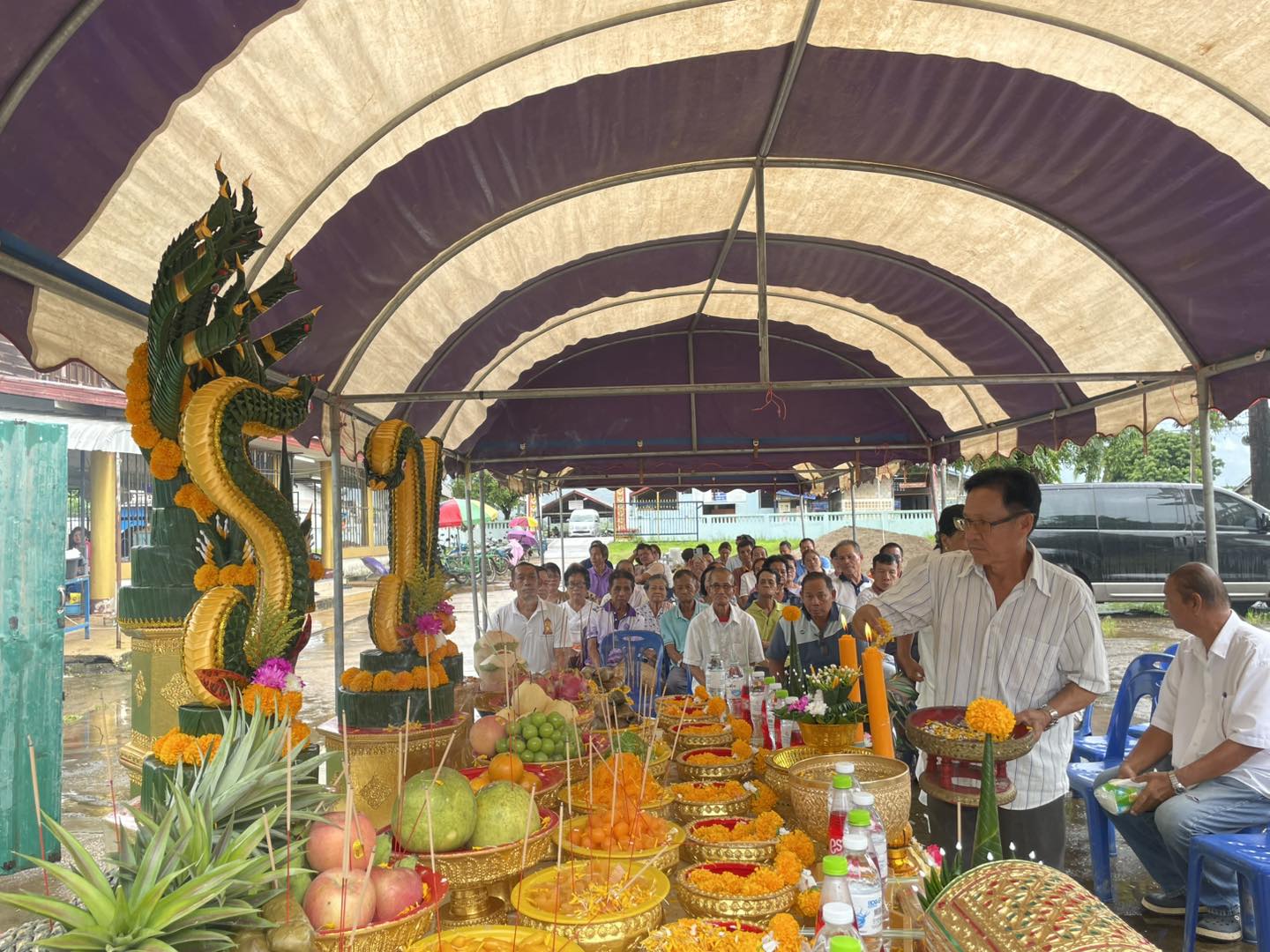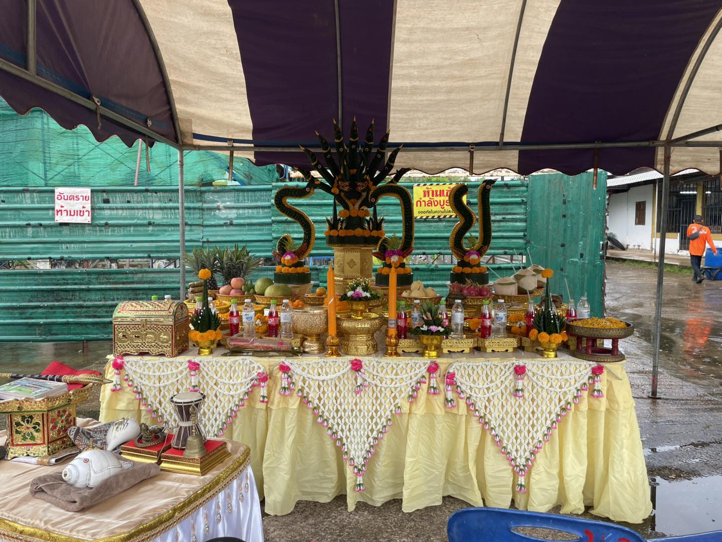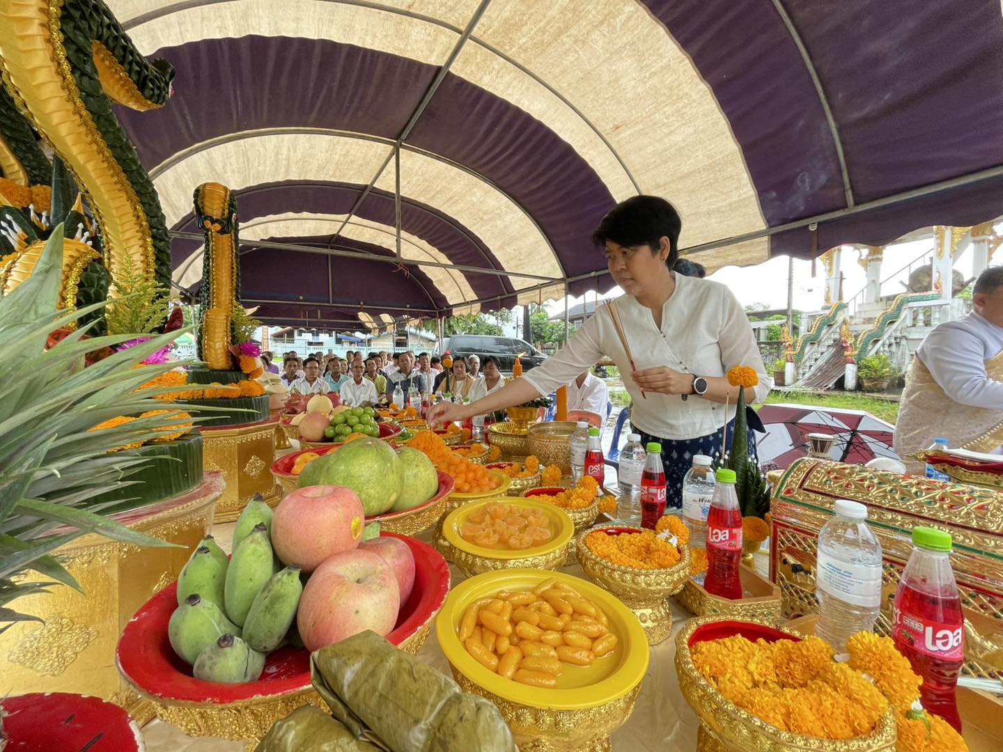ร่วมพิธีบวงสรวงในการบูรณะโครงการบูรณะและปรับปรุงภูมิทัศน์อุโบสถ (สิม) วัดจอมทองธรรมคุณ ตำบลหอคำ อำเภอเมืองบึงกาฬ จังหวัดบึงกาฬ