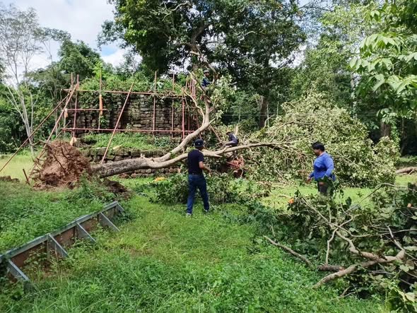 วันศุกร์ที่ ๓ ตุลาคม ๒๕๖๘ เจ้าหน้าที่จากกลุ่มโบราณคดี และกลุ่มอนุรักษ์โบราณสถาน สำนักศิลปากรที่ ๘ ขอนแก่น ลงพื้นที่ตัดต้นไม้ที่ล้มโค่นทับโบราณสถานวัดป่าพระธาตุกู่ บ้านดอนกู่ ตำบลปางกู่ อำเภอโนนสัง จังหวัดหนองบัวลำภู ซึ่งเป็นผลกระทบจากพายดีเปรสชันบัวลอย