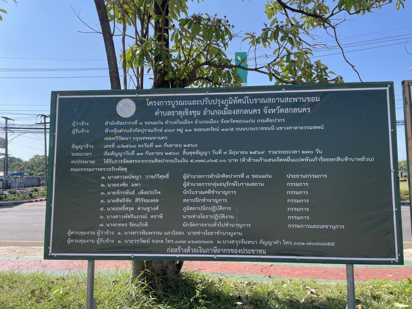 วันพฤหัสบดีที่ ๑๓ พฤศจิกายน ๒๕๖๘ นางสาวมนัชญา วาจก์วิศุทธิ์ ผู้อำนวยการสำนักศิลปากรที่ ๘ ขอนแก่น พร้อมด้วยคณะกรรมการตรวจรับพัสดุ ประชุมพิจารณาการตรวจรับงานงวดที่ ๑ พร้อมทั้งติดตามความคืบหน้า ปัญหาและอุปสรรค ในการดำเนินโครงการบูรณะและปรับปรุงภูมิทัศน์โบราณสถานสะพานขอม ตำบลธาตุเชิงชุม อำเภอเมืองสกลนคร จังหวัดสกลนคร ณ โบราณสถานสะพานขอม ตำบลธาตุเชิงชุม อำเภอเมืองสกลนคร จังหวัดสกลนคร
