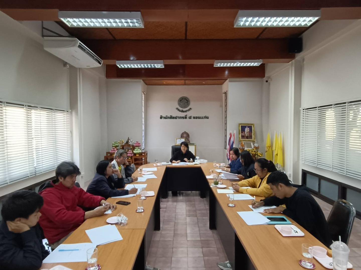 ๓๐ น. นางสาวมนัชญา วาจก์วิศุทธิ์ ผู้อำนวยการสำนักศิลปากรที่ ๘ ขอนแก่น พร้อมด้วยข้าราชการ ประชุมผู้อำนวยการ หัวหน้ากลุ่ม/ฝ่าย ในสังกัดสำนักศิลปากรที่ ๘ ขอนแก่น ณ ห้องประชุมสำนักศิลปากรที่ ๘ ขอนแก่น