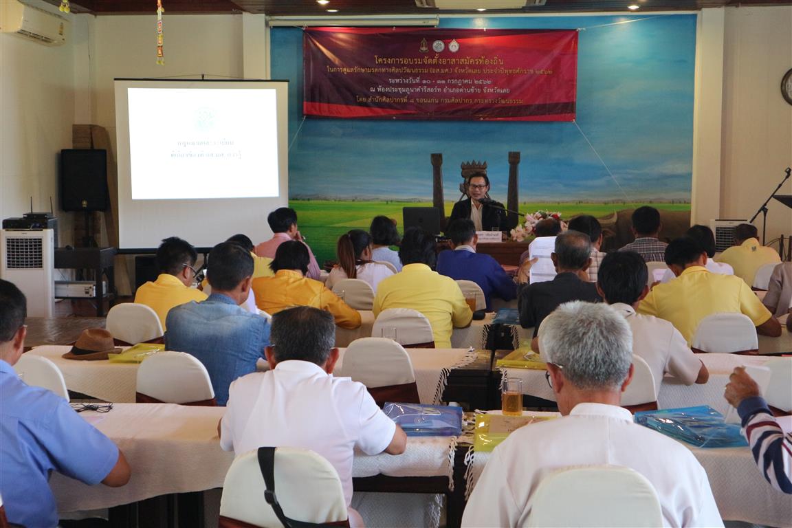 ประมวลภาพกิจกรรมอบรมจัดตั้งอาสาสมัครท้องถิ่นในการดูแลรักษามรดกทางศิลปวัฒนธรรม (อส.มศ.) จังหวัดเลย ประจำปีงบประมาณ ๒๕๖๒