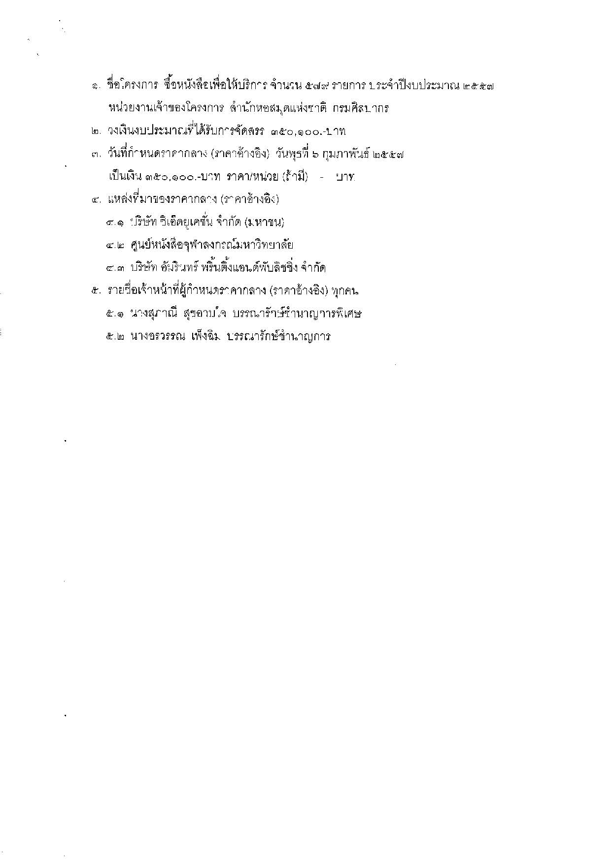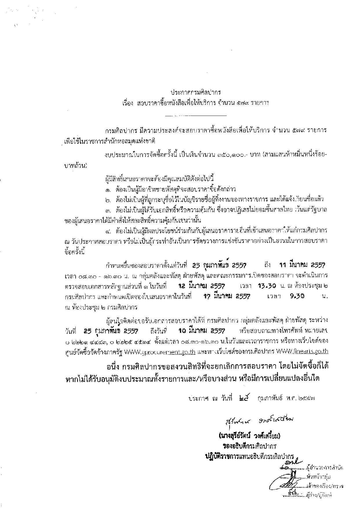 ประกาศสอบราคาซื้อหนังสือเพื่อให้บริการ จำนวน 579 รายการ ประจำปีงบประมาณ 2557 เพื่อใช้ในราชการสำนักหอสมุดแห่งชาติ