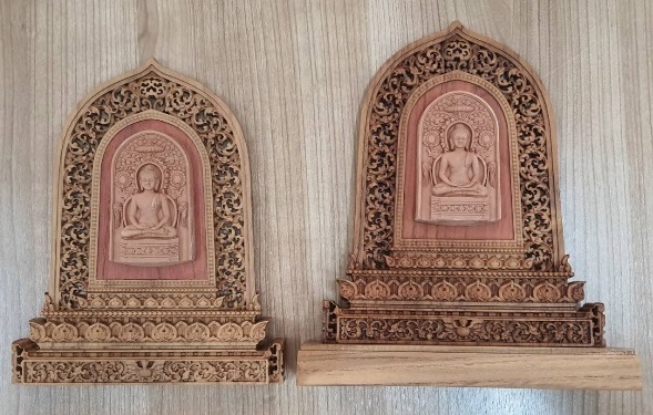 รายการที่ 27 พระพิมพ์ทวารวดี อู่ทอง เนื้อดินเผา ประดับบนซุ้มสลักไม้ (แบบแขวนผนังและตั้งโต๊ะ)