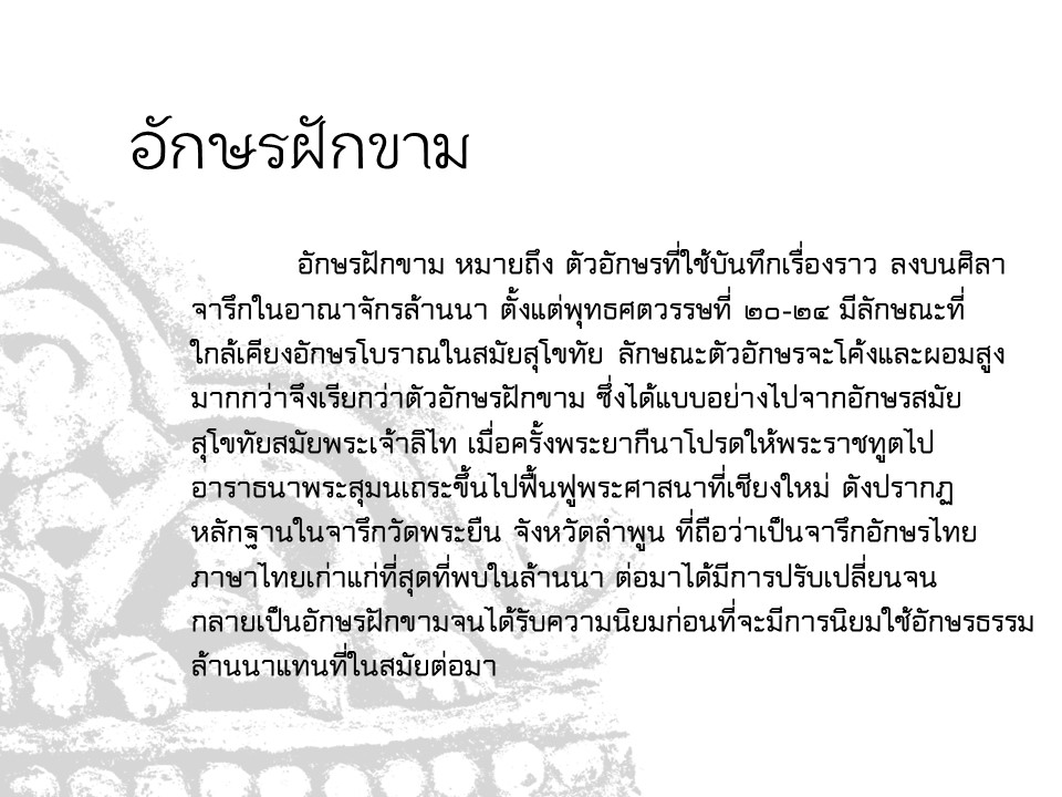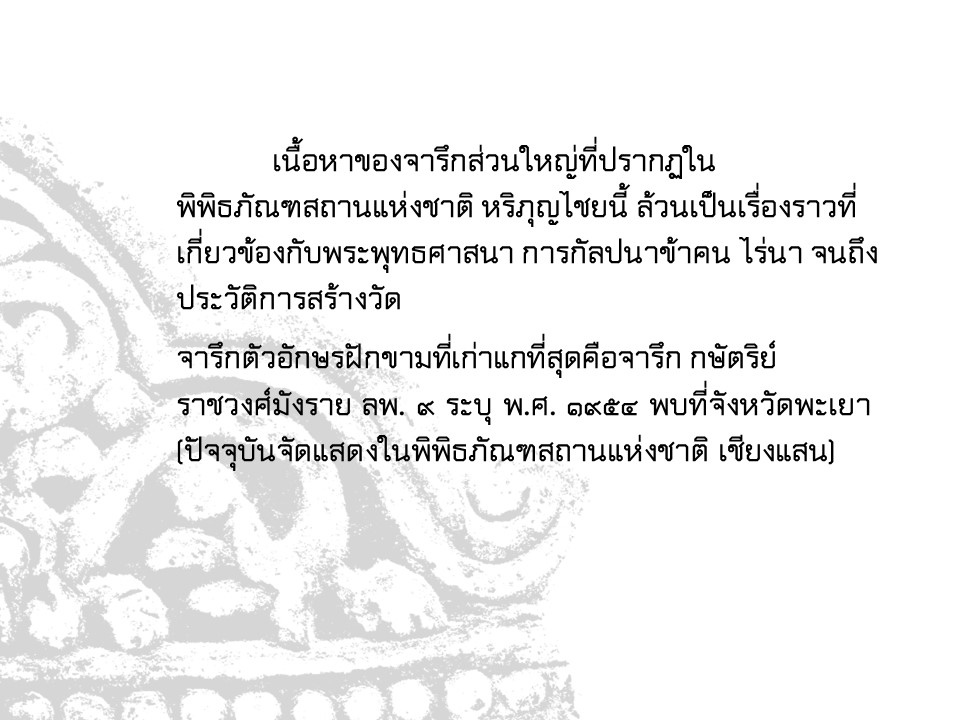 สำหรับโพสต์นี้ ขอนำเสนอจารึกอักษรฝักขามบางส่วน สำหรับจารึกหลักอื่นๆ ทางพิพิธภัณฑสถานแห่งชาติ หริภุญไชย จะได้นำมาเผยแพร่ในโอกาสต่อไป