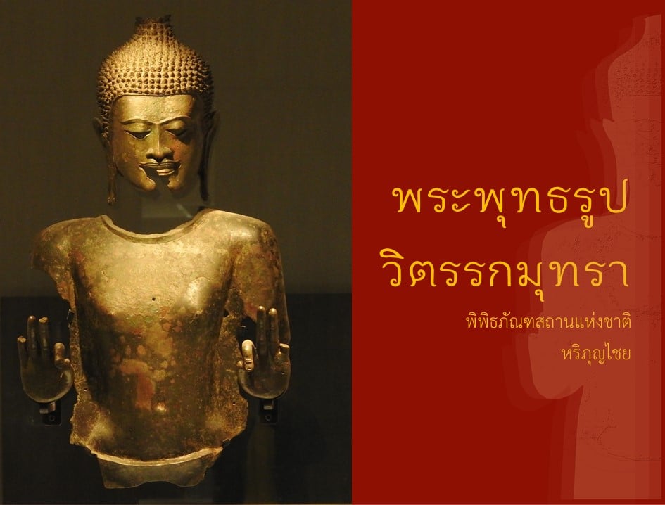 ___วิตรรกมุทรา มีลักษณะคือ ปลายพระอังคุฐ (นิ้วโป้ง) แตะกับปลายพระดรรชนี (นิ้วชี้) หรือพระมัชฌิมา (นิ้วกลาง) และที่มีลักษณะนิ้วพระหัตถ์ทั้ง ๔ งอพับลงมา ยกเว้นพระอังคุฐ (นิ้วโป้ง) พระหัตถ์ทั้งสองยกขึ้นเสมอพระอุระ พบทั่วไปในศิลปะทวารวดีในภาคกลางของประเทศไทย ซึ่งได้รับอิทธิพลมาจากพระพุทธรูปในศิลปะอินเดียแบบอมราวดี การทำพระหัตถ์ในลักษณะดังกล่าวนี้ถือว่าเป็นการแสดงพระหัตถ์ของพระพุทธรูปในศิลปะทวารวดีที่พบได้ทั่วไป ก่อนที่จะส่งอิทธิพลให้กับพระพุทธรูปในศิลปะหริภุญไชยที่พบในบริเวณจังหวัดลำพูนและใกล้เคียง