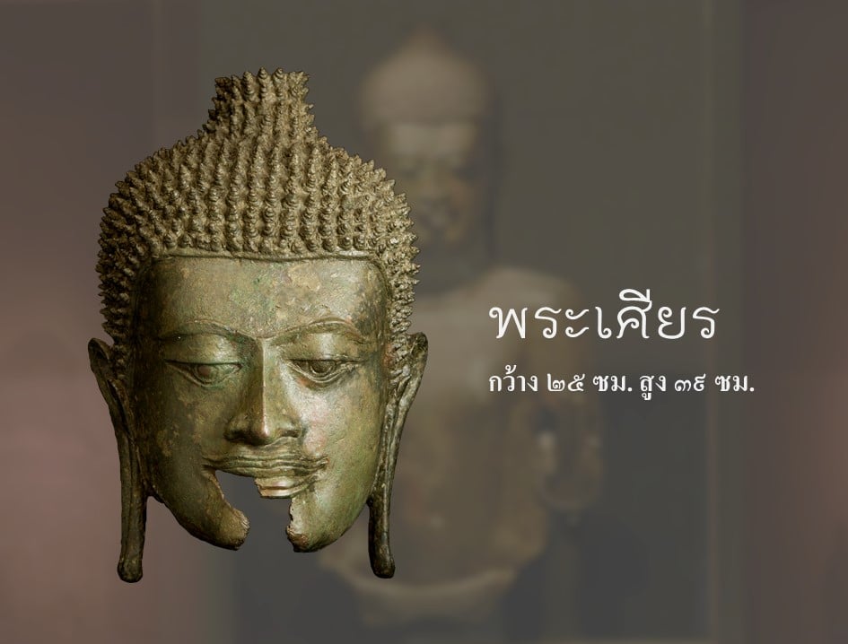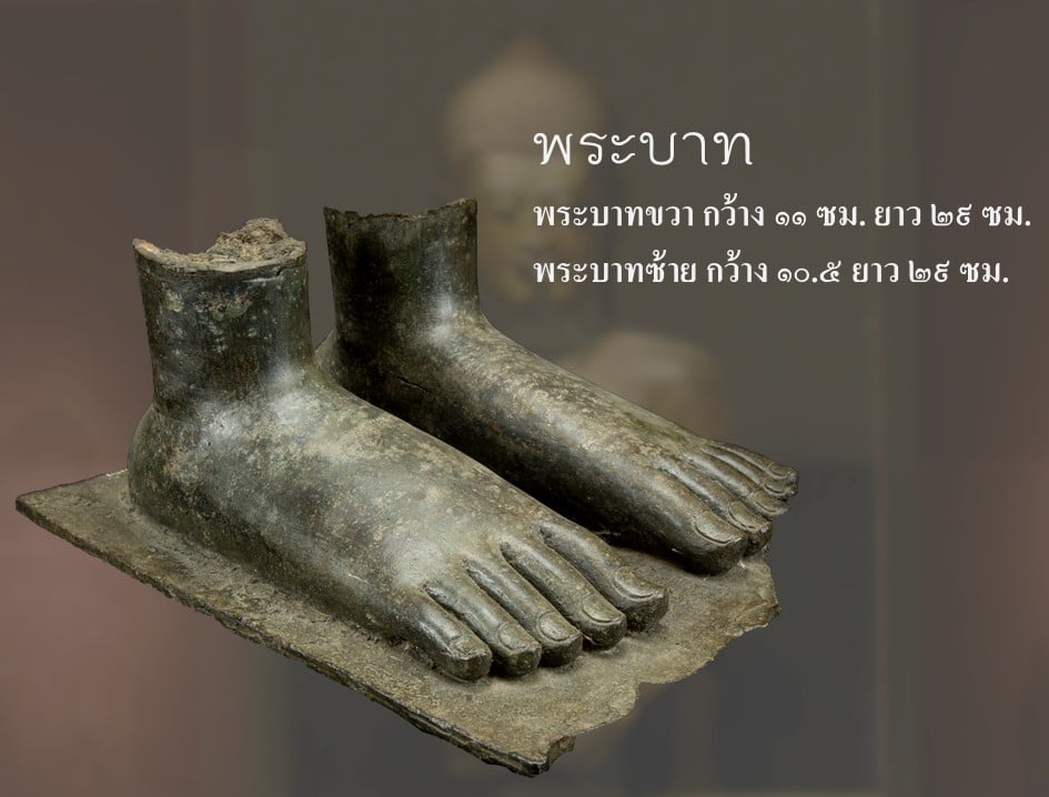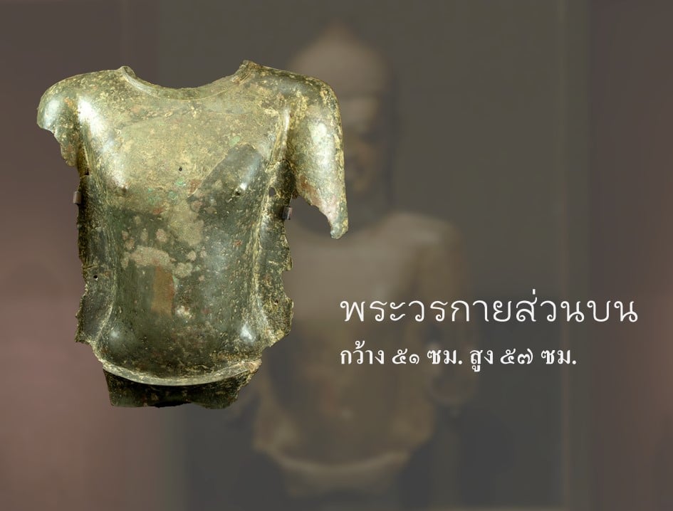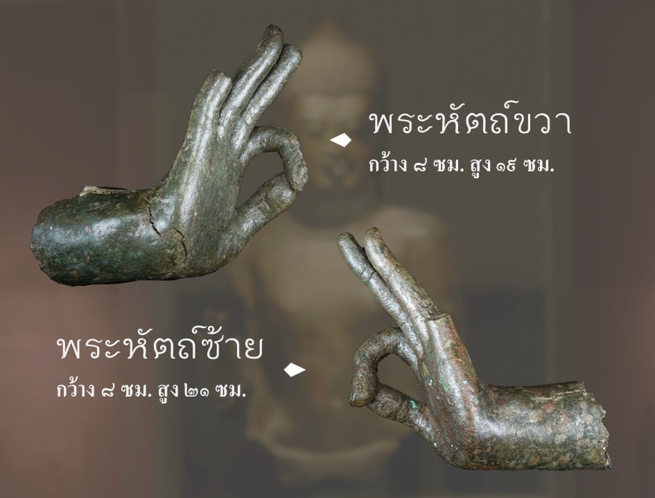 ___พระพุทธรูปแสดงวิตรรกมุทราสองพระหัตถ์ ทำจากสำริด นับว่าเป็นพระพุทธรูปสำริดขนาดใหญ่ในศิลปะหริภุญไชย พระพุทธรูปองค์นี้ ย้ายมาจากวัดพระธาตุหริภุญชัย เมื่อปี พ.ศ. ๒๕๑๘ มีเพียงส่วนพระเศียร พระหัตถ์ พระวรกายส่วนบน และพระบาท ปัจจุบันได้นำส่วนต่างๆของพระพุทธรูปมาจัดแสดงติดผนัง เมื่อวัดความสูงจากพระบาทถึงพระเศียร มีขนาดสูงถึง ๑๙๐ เซนติเมตร