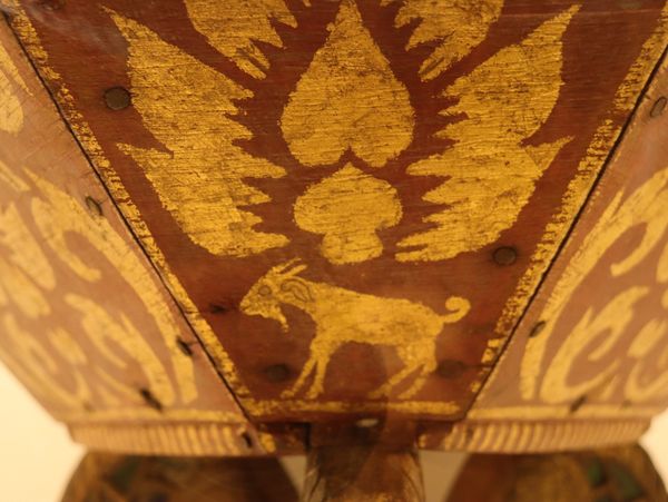 มีขารองจำนวน ๓ ขา ประดับตกแต่งด้วยการลงรัก ทาชาด ปิดทองประดับกระจก ตามแต่ความถนัดและความชำนาญของช่างในแต่ละท้องถิ่น