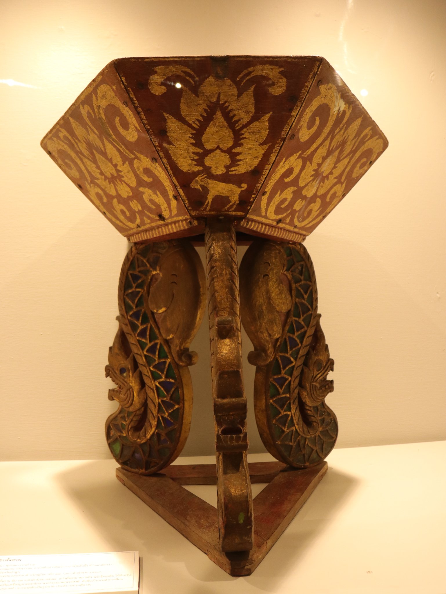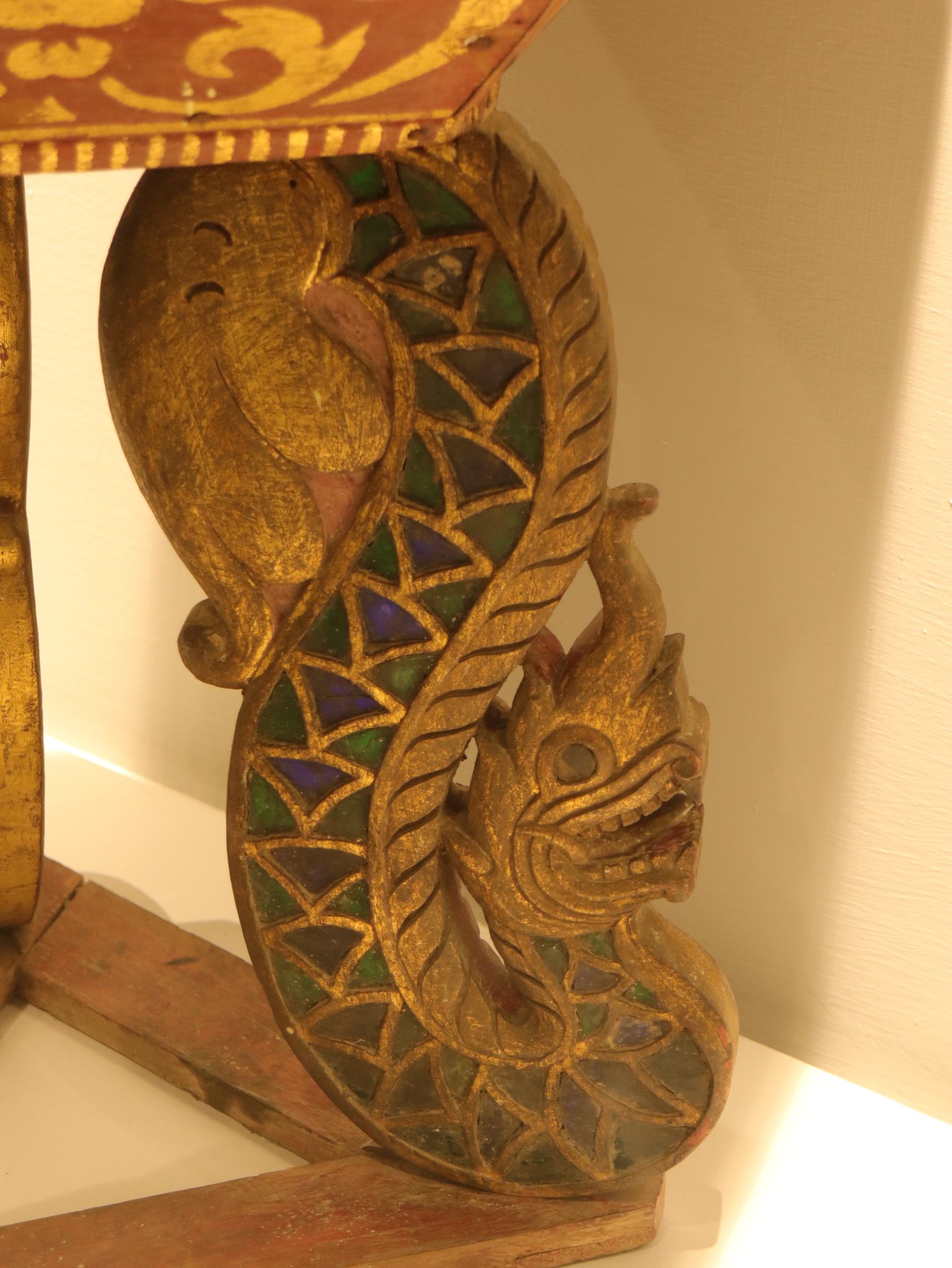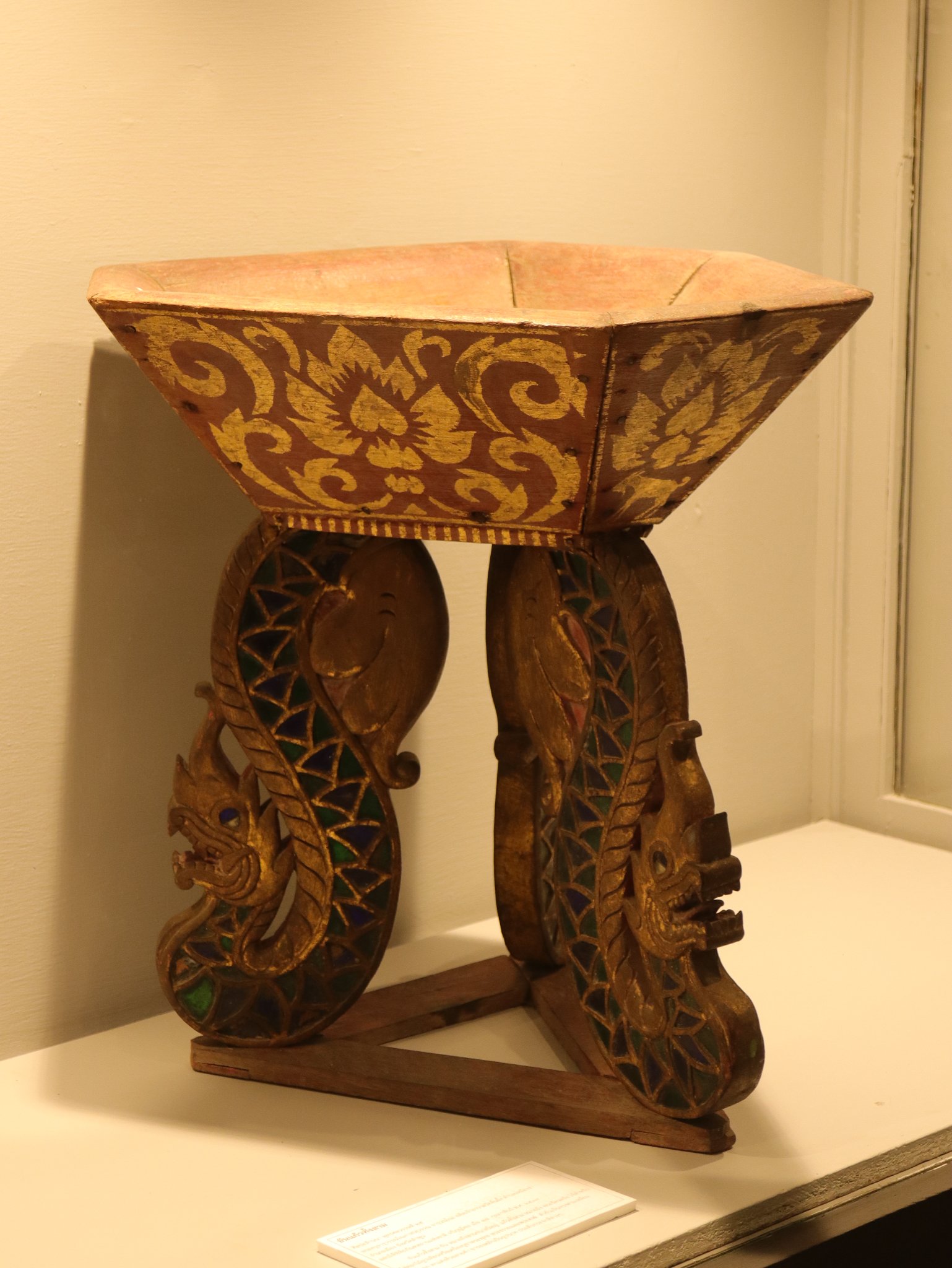 ขาพานแกะสลักเป็นรูปนาคประดับด้วยกระจกสีและปิดทอง