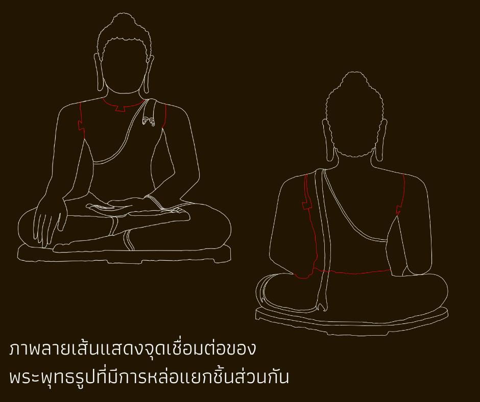 ช่างโบราณจึงได้มีวิธีการหล่อแบบแยกชิ้นส่วน แล้วนำมาประกอบกันโดยมีสลัก