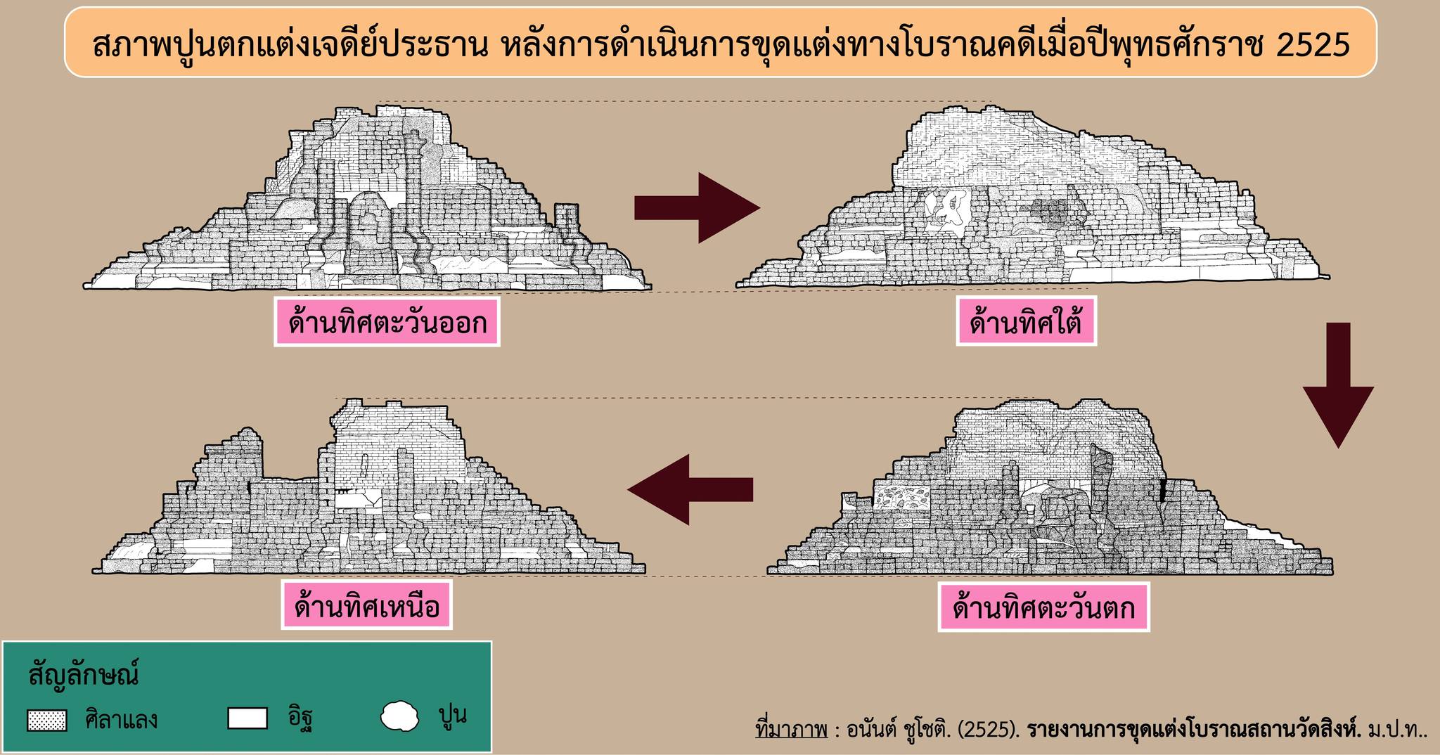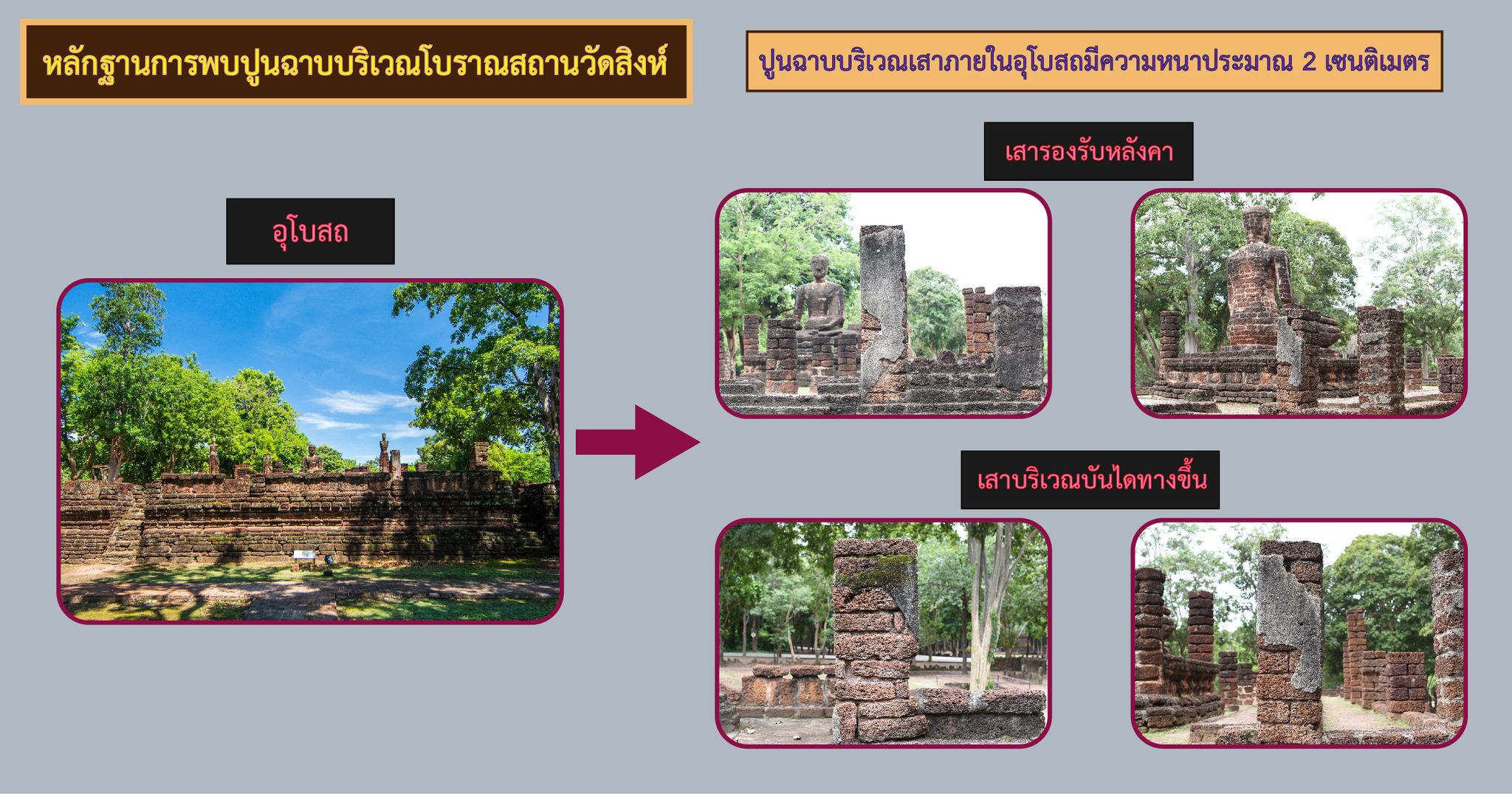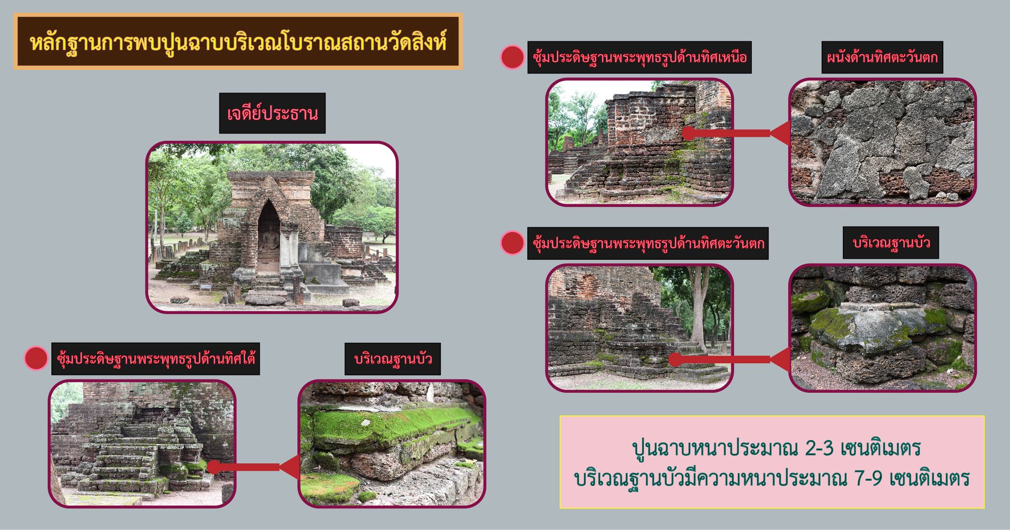 ร่องรอยการใช้วัสดุประเภทปูนที่โบราณสถานวัดสิงห์