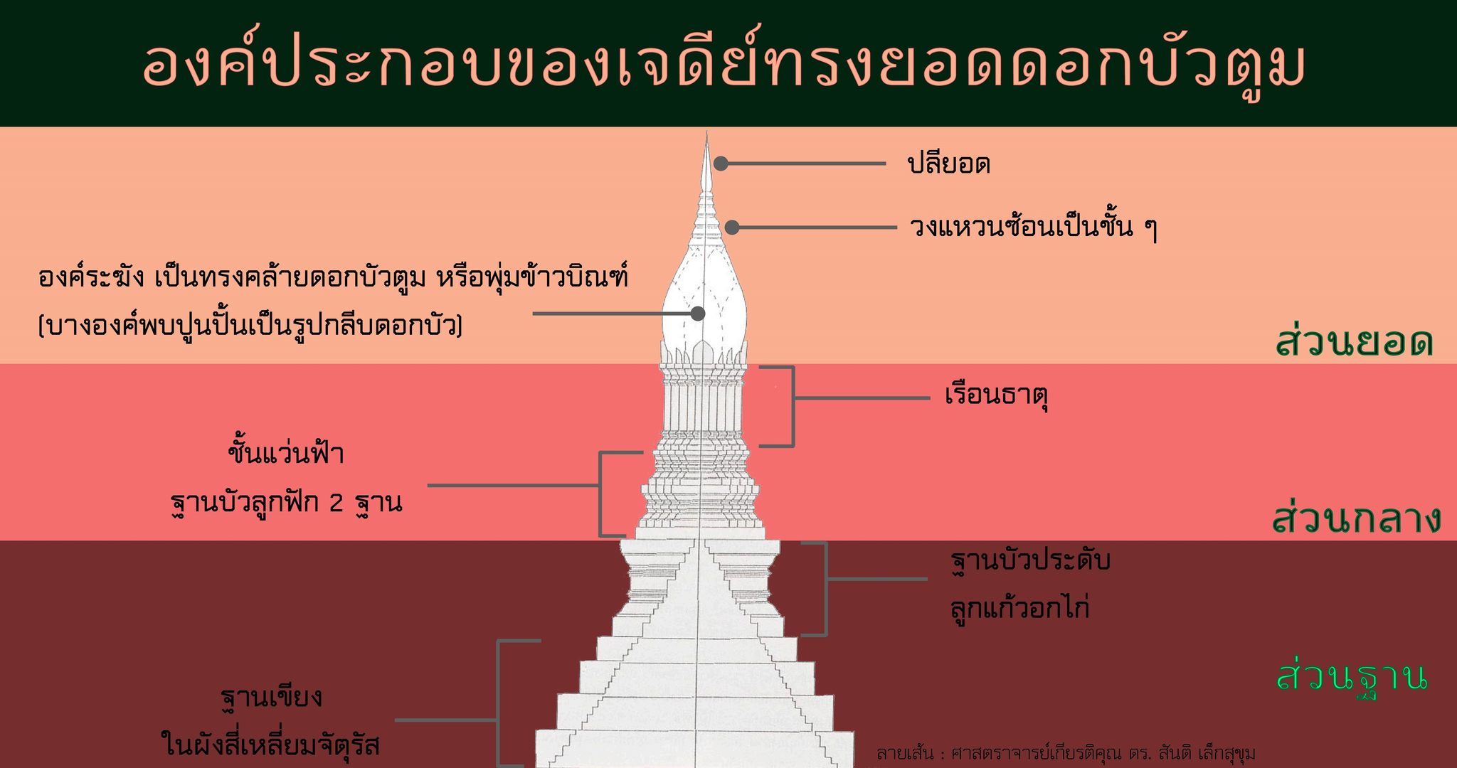 สันติ เล็กสุขุม. เจดีย์ ความเป็นมาและคำศัพท์เรียกองค์ประกอบเจดีย์ในประเทศไทย. (พิมพ์ครั้งที่ 5). กรุงเทพฯ :