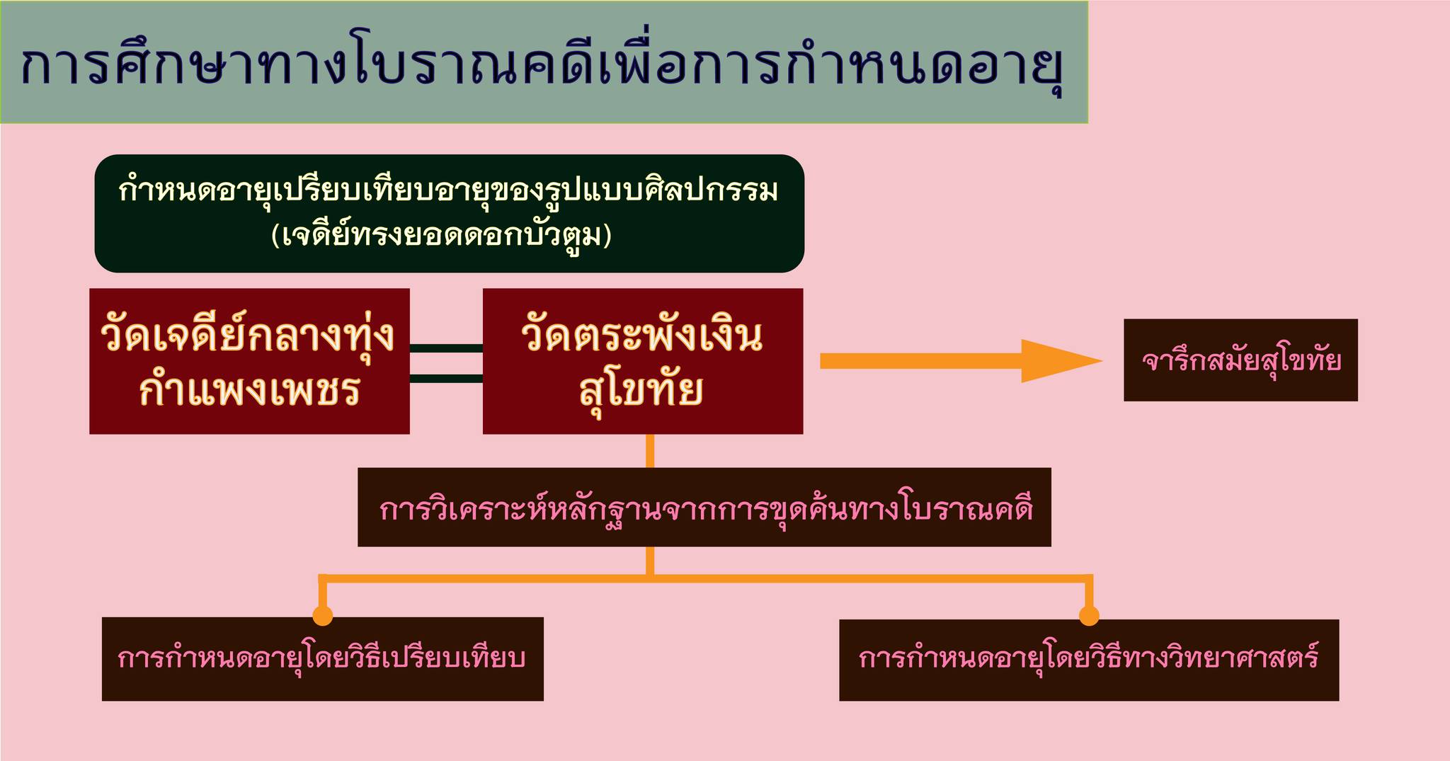 อุทยานประวัติศาสตร์สุโขทัย. การศึกษาทางโบราณคดีเพื่อจัดลำดับอายุสมัยของแหล่งศิลปกรรมเมืองสุโขทัย