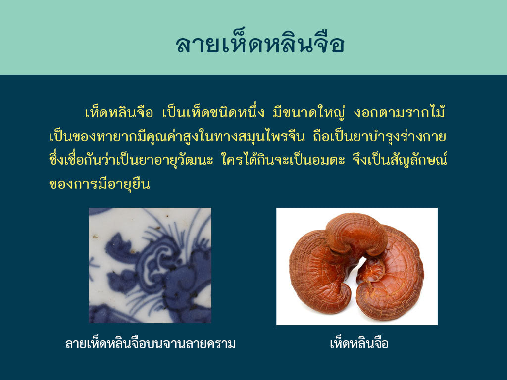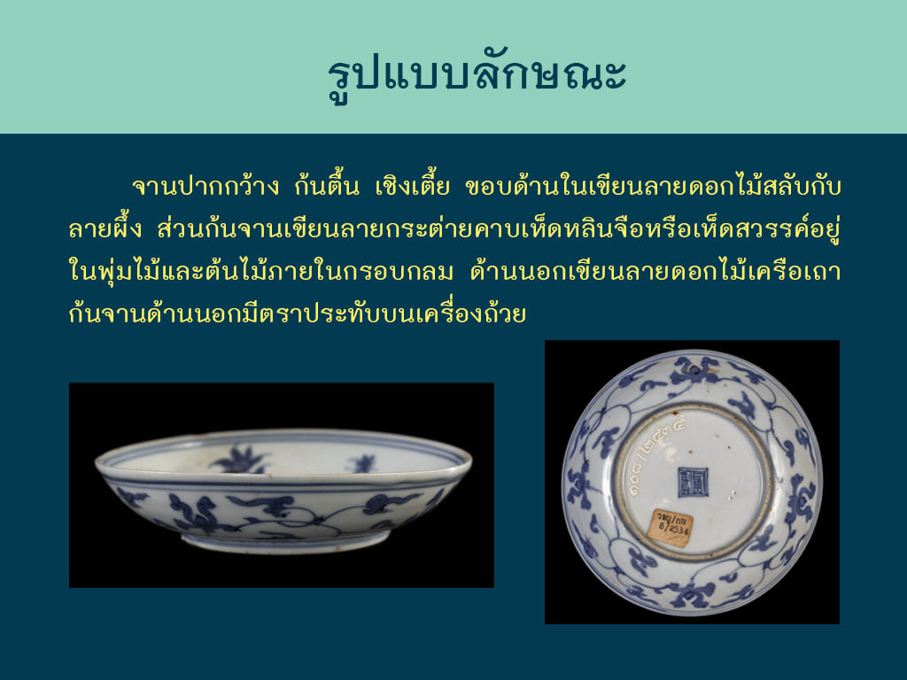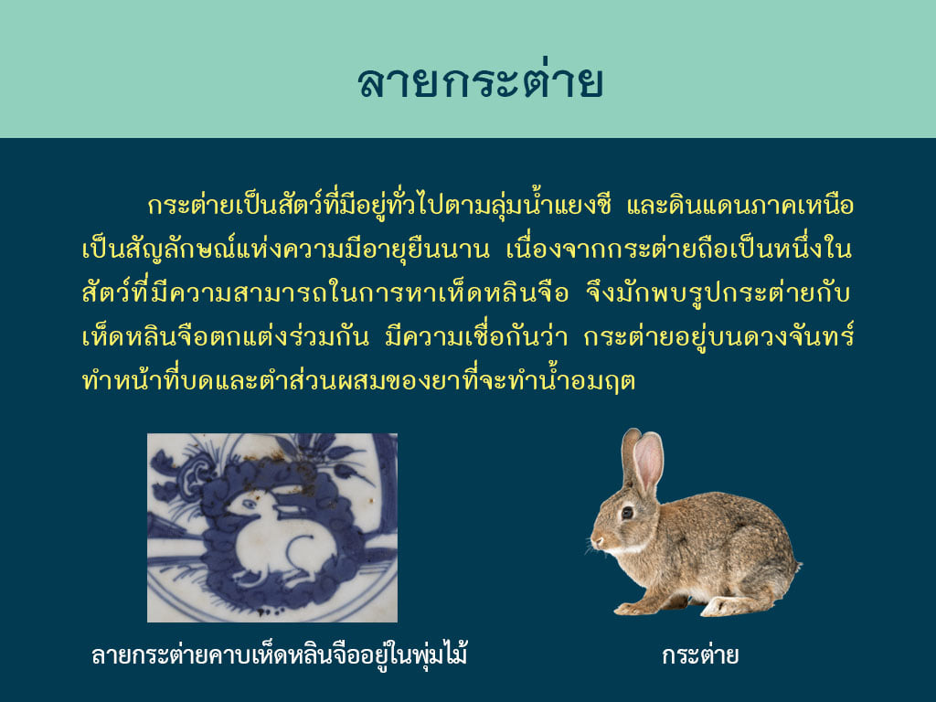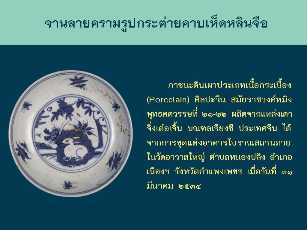 จานลายครามรูปกระต่ายคาบเห็ดหลินจือ