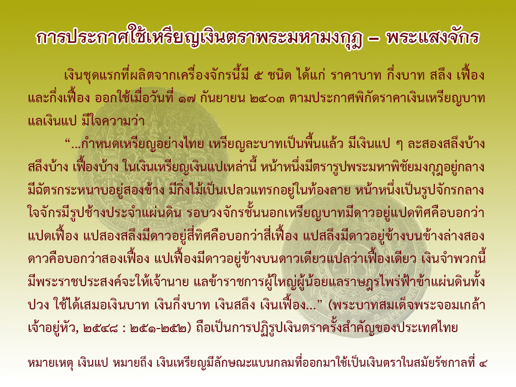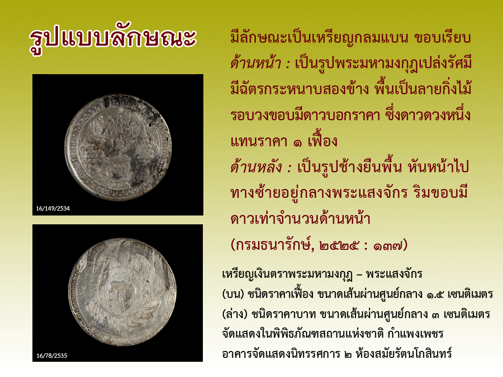 เหรียญเงินตราพระมหามงกุฎ – พระแสงจักร