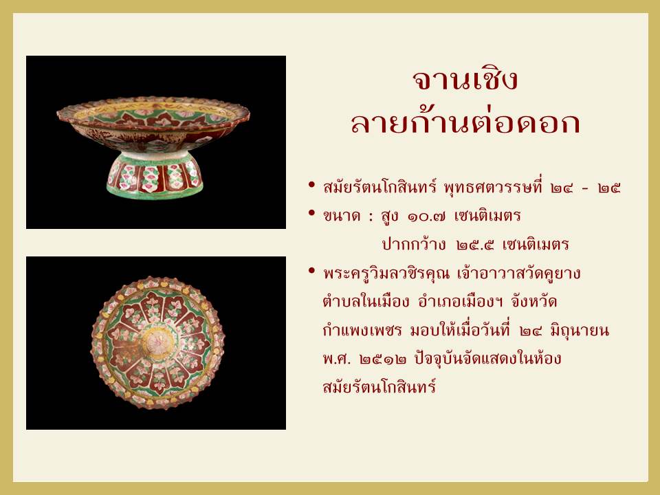 จานเชิงลายก้านต่อดอก : เครื่องถ้วยเบญจรงค์ชิ้นเยี่ยมในพิพิธภัณฑสถานแห่งชาติ กำแพงเพชร