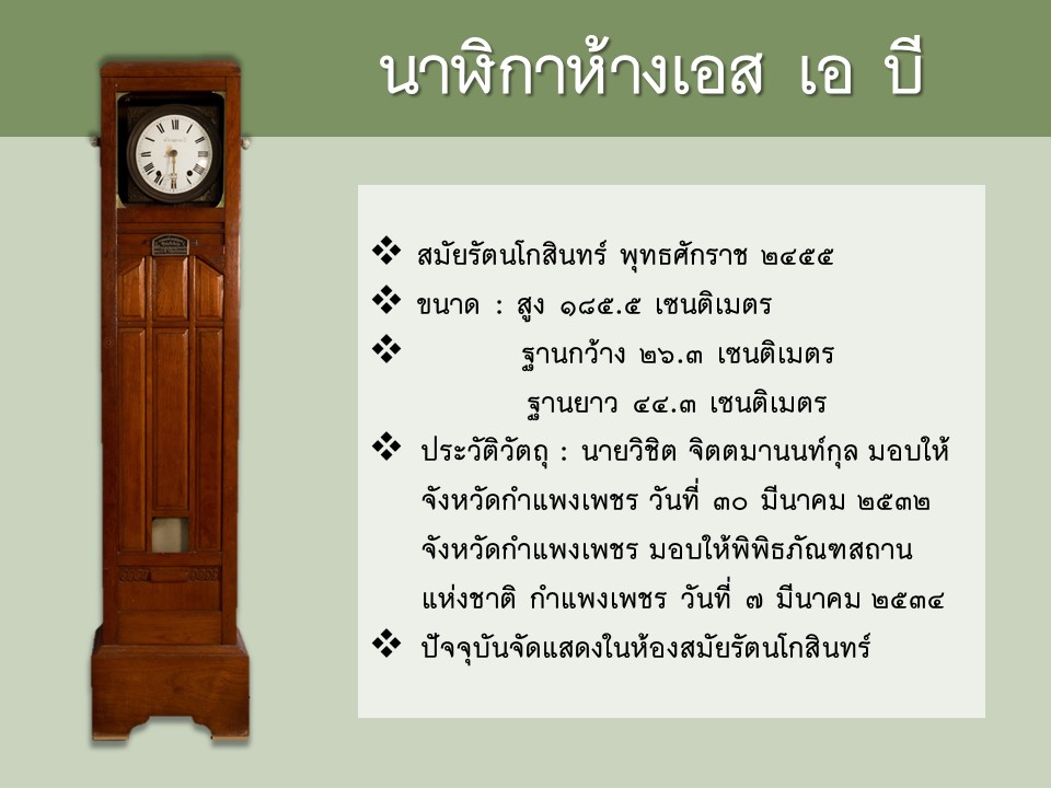 นาฬิกาห้างเอส เอ บี โบราณวัตถุชิ้นเยี่ยมในพิพิธภัณฑสถานแห่งชาติ กำแพงเพชร