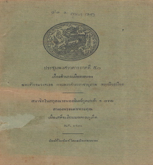 ประชุมพงศาวดารภาคที่ 50 เรื่องตำนานเมืองระนอง พระเจ้าบรมวงศ์เธอ กรมพระดำรงราชานุภาพ