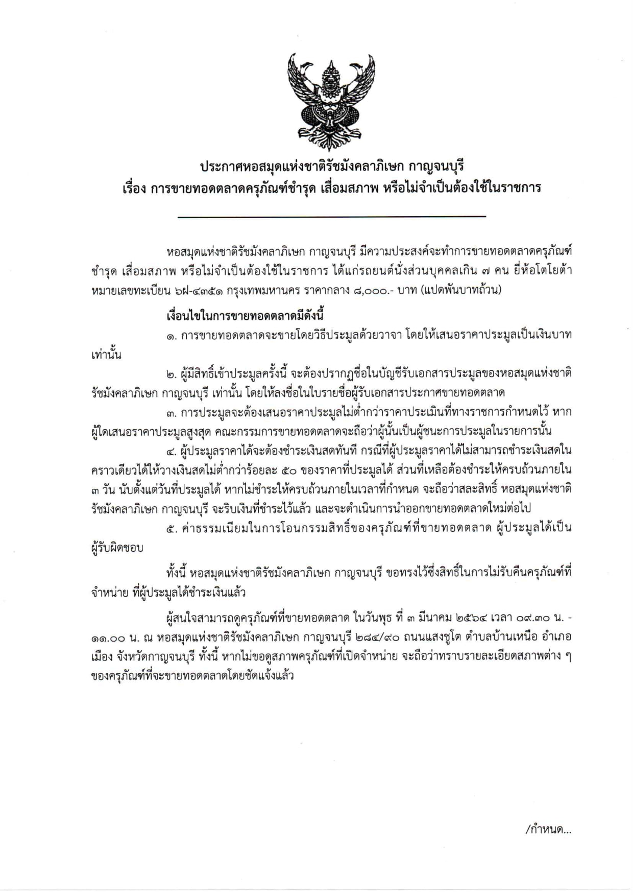 ประกาศประกวดราคาจ้างโครงการปรับปรุงห้องน้ำชาย-หญิง หอสมุดแห่งชาติรัชมังคลาภิเษก กาญจนบุรี ด้วยวิธีประกวดราคาอิเล็กทรอนิกส์ (e-bidding)