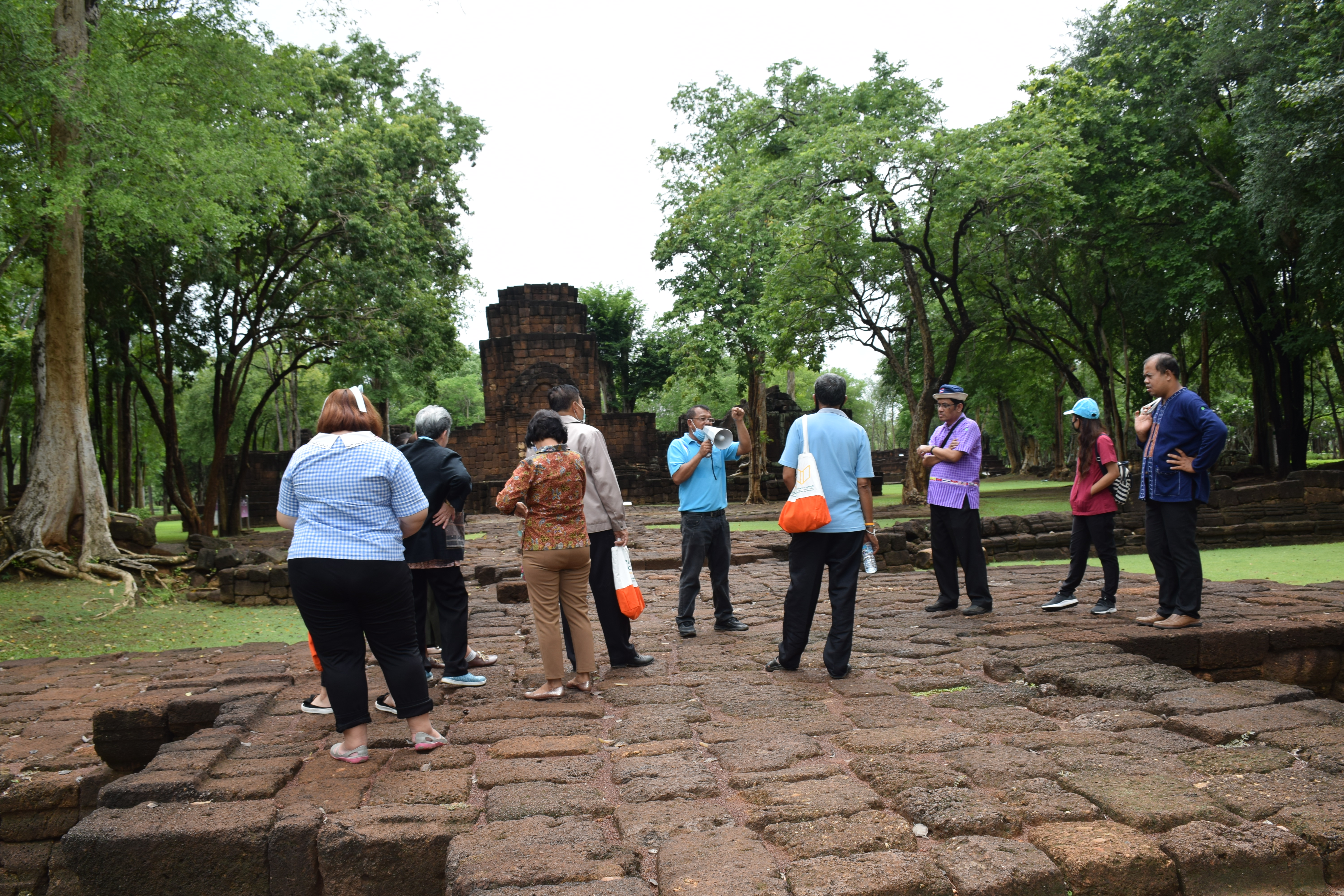 ๒. อุทยานประวัติศาสตร์เมืองสิงห์ โดยมี นายพิชิต รงค์ฤทธิไกร พนักงานดูแลโบราณสถาน อธิบายถึงประวัติความเป็นมา พร้อมทั้งนำชมโบราณสถาน และหลุมขุดค้นทางโบราณคดี