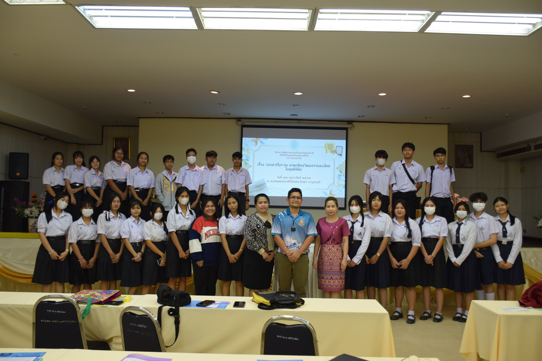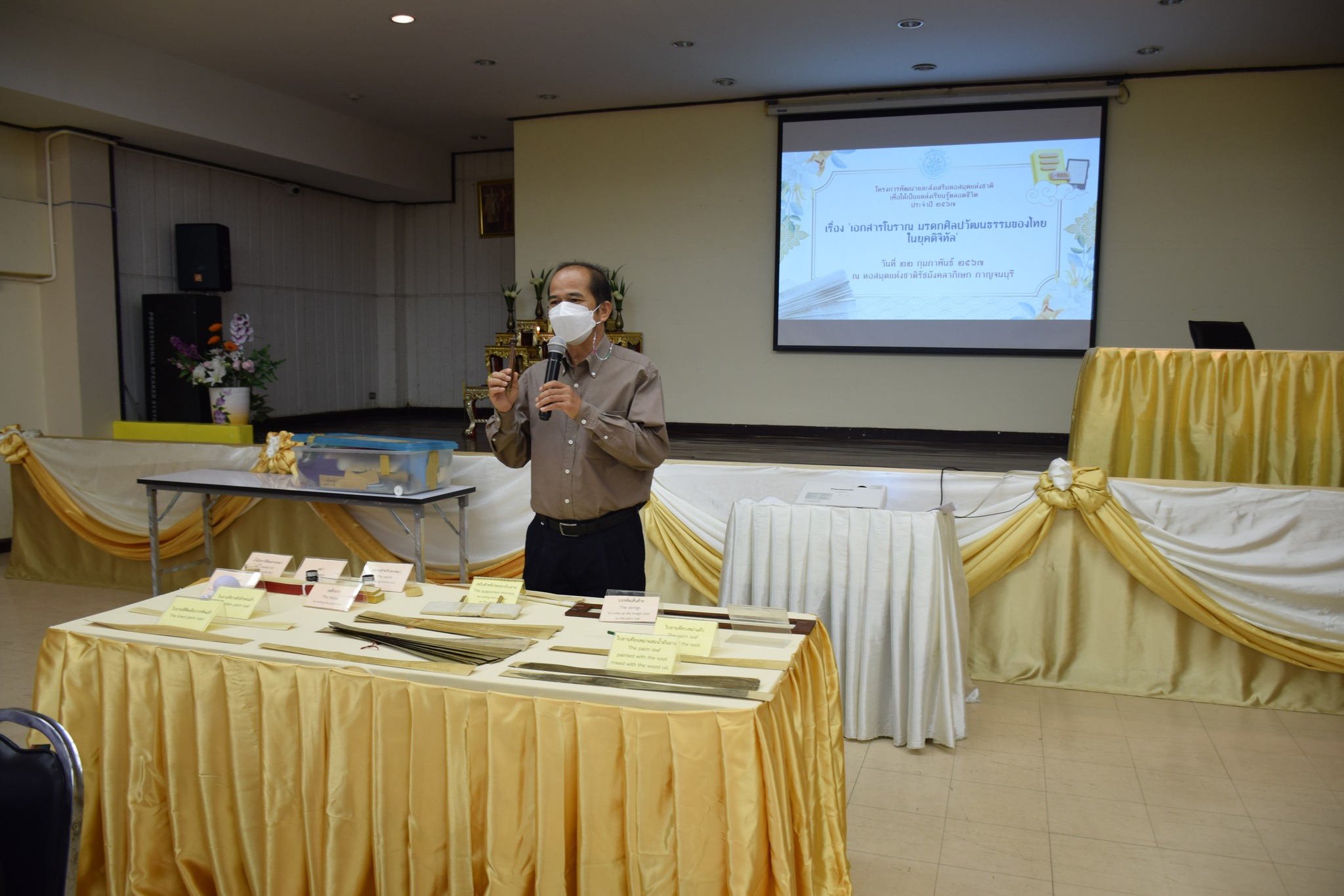 วันที่ 22 กุมภาพันธ์ 2567 หอสมุดแห่งชาติรัชมังคลาภิเษก กาญจนบุรี จัดโครงการพัฒนาและส่งเสริมหอสมุดแห่งชาติเพื่อให้เป็นแหล่งเรียนรู้ตลอดชีวิต ประจำปี 2567 ครั้งที่ 2 เรื่อง “เอกสารโบราณ มรดกศิลปวัฒนธรรมของไทย ในยุคดิจิทัล”
